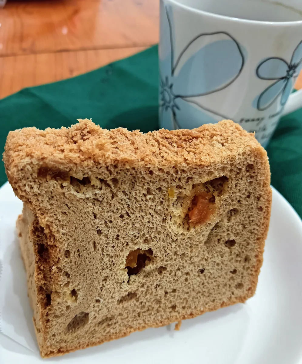 わたしもシフォンケーキを作りますが、ドライフルーツを入れたことはありません。
