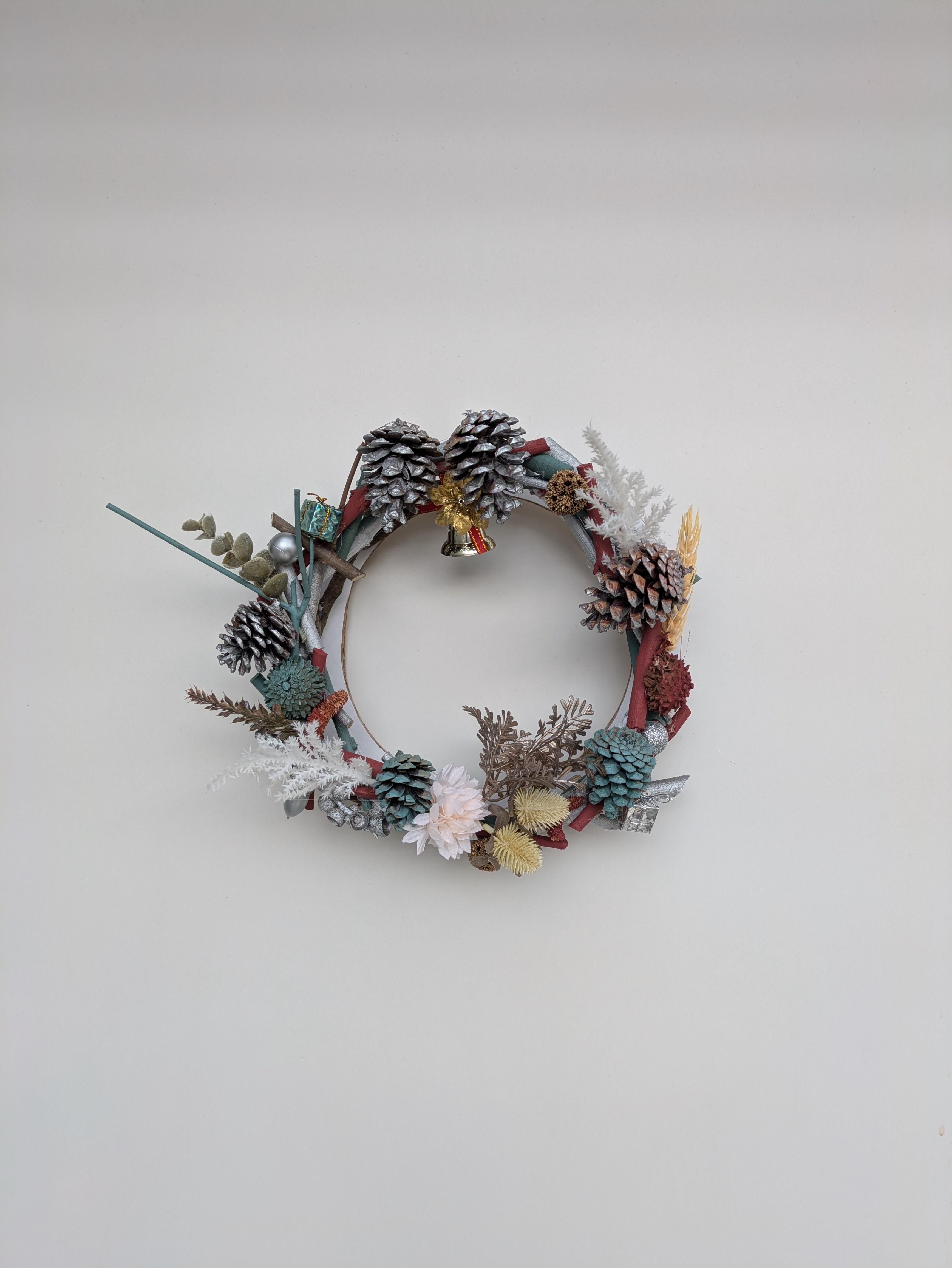 シマトネリコの枝🌿のリースや、シダローズのクリスマスカラーも綺麗ですね🎄🎅🎁✨