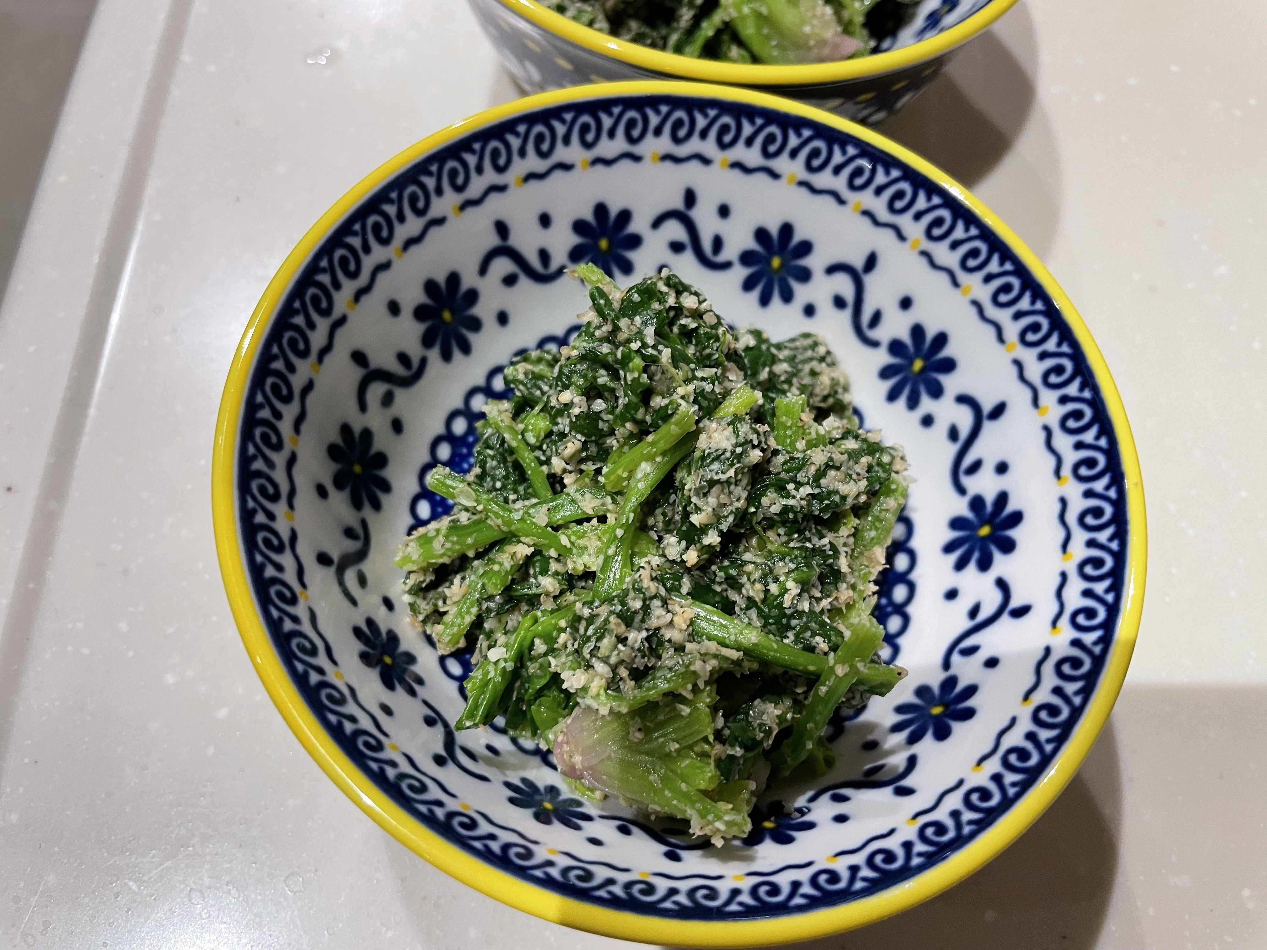 最近ハマってます!めんつゆと,わさびでの和物!しらすを入れたら,今日は,しらすが無くて,定番の胡麻和えでしたが、わさびがピリリときいて、おいしいです!