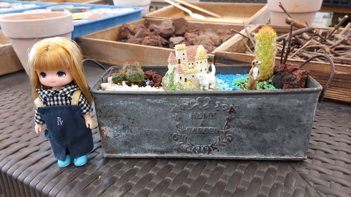 何だかまとまりのない寄植えですが、楽しかった🙌上のカラーの砂は水をかけると固まるので、帰るまで崩さずに帰って来れました🤗帰ってから、水をコップの3分の1位あげる😁後は、置く場所によるけど、月に1から2回程度の水やりでいいそうですよ🥰
