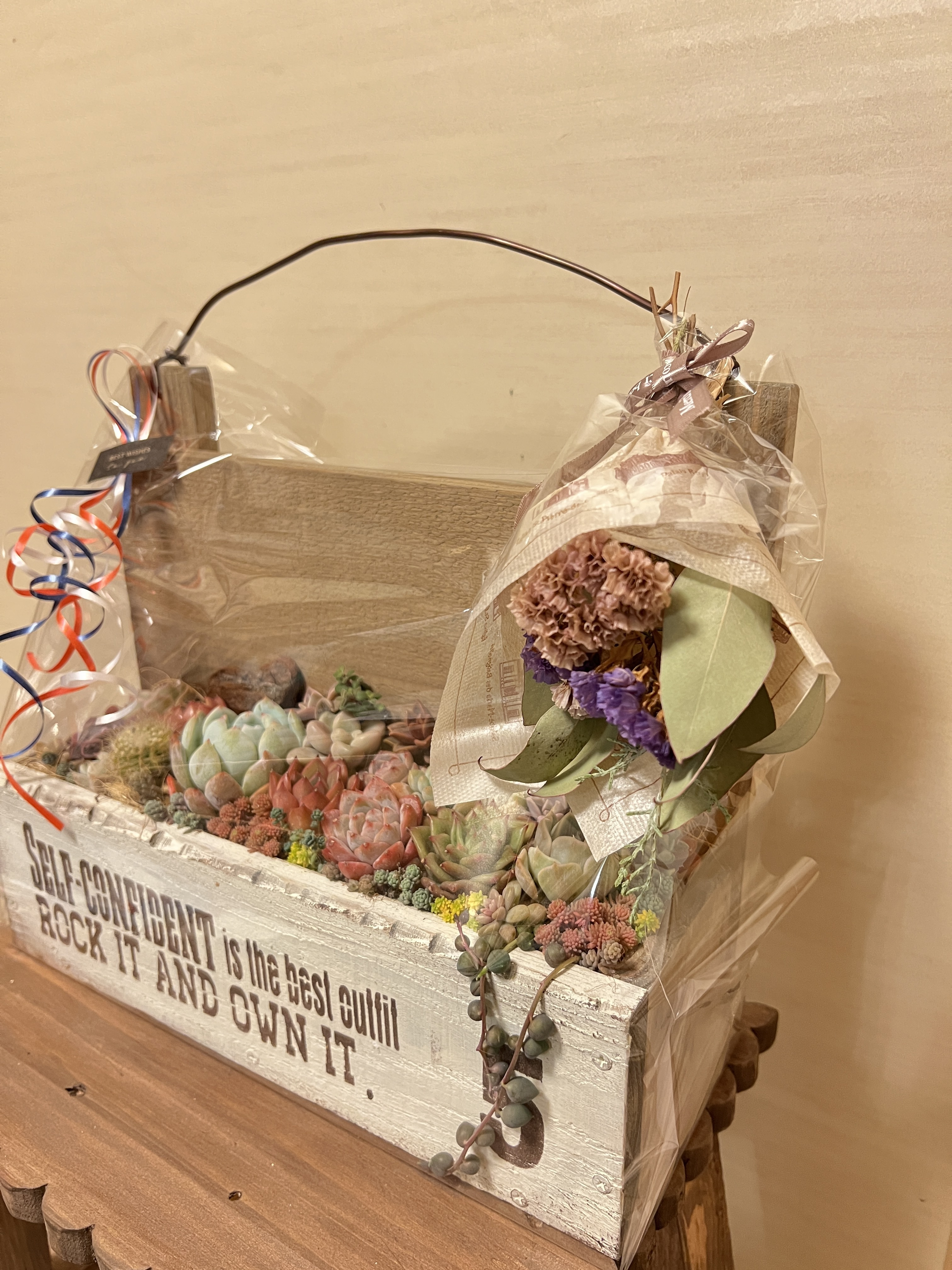 とっても素敵な寄せ植えにラッピングで大喜び間違いないですねっ🥰💕