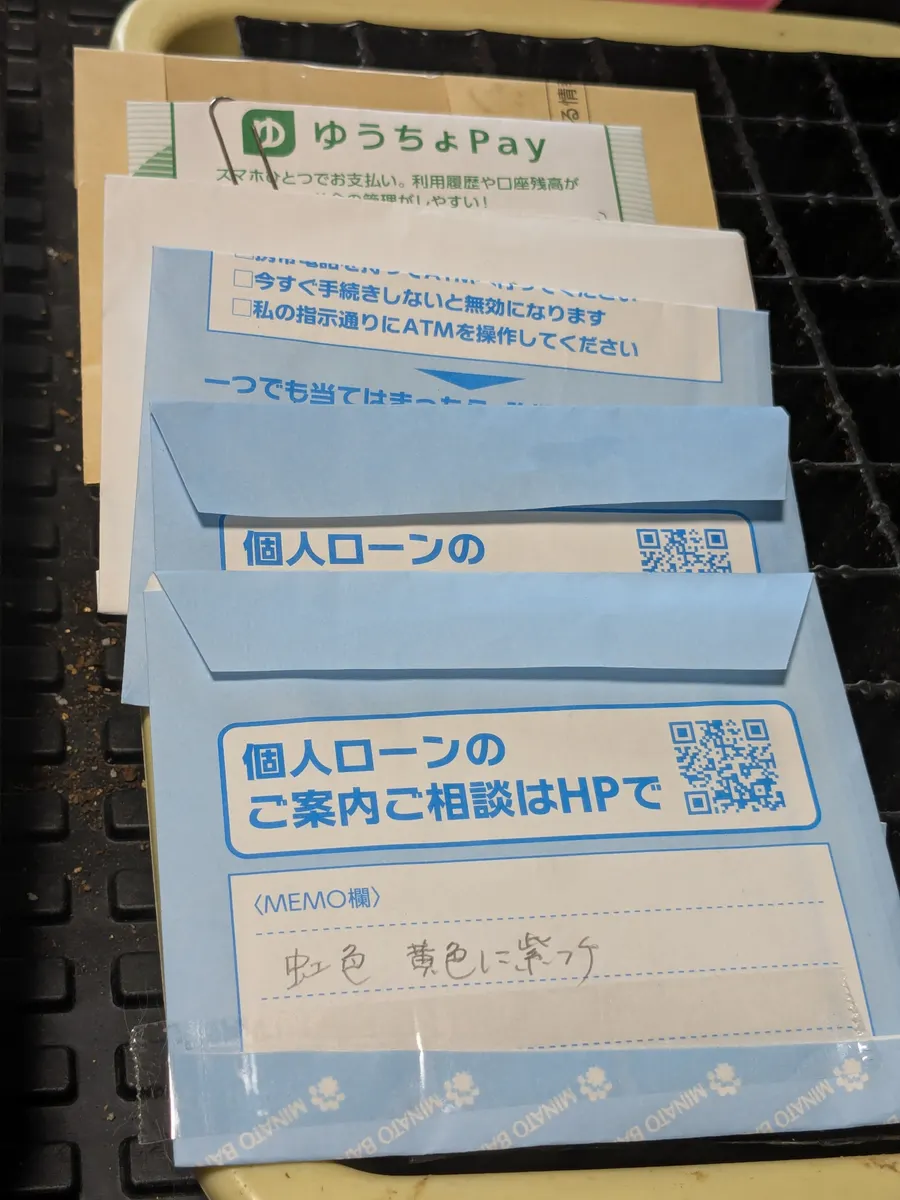 採った種も「ブルー」や「黄色」などと袋に書いておくのですが、花を1個入れとくと分かりやすいですね、流石です✨個人ローンのご相談はホームページで😂