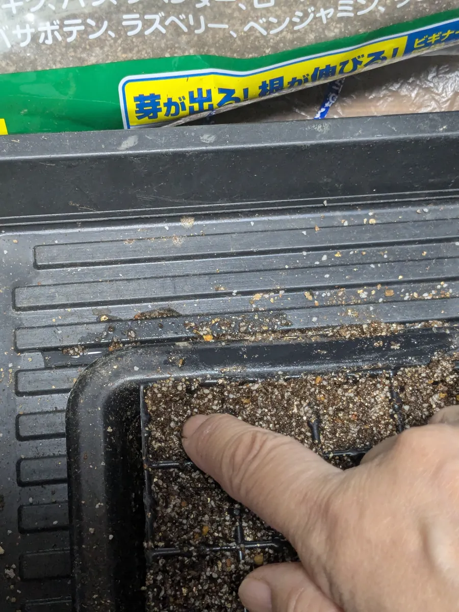 種を土の上に置いても土と変わらないので、ちっともわかりません🙄