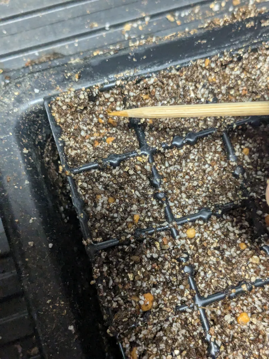 この時はスポイドで吸い上げて植え付けてましたが、今年はmilimiliさん見習って、竹串使おうかと思ってます。この方法を使う前の種蒔きはほぼ全滅。アスターが1本だけ生えてきました。😥