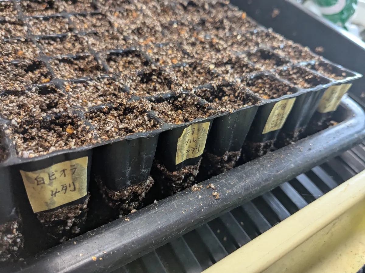 自宅採取の種でもビオラの発芽率アップ。去年9月末の写真ですが添付します。今年は気温高くてまだ蒔けていません。