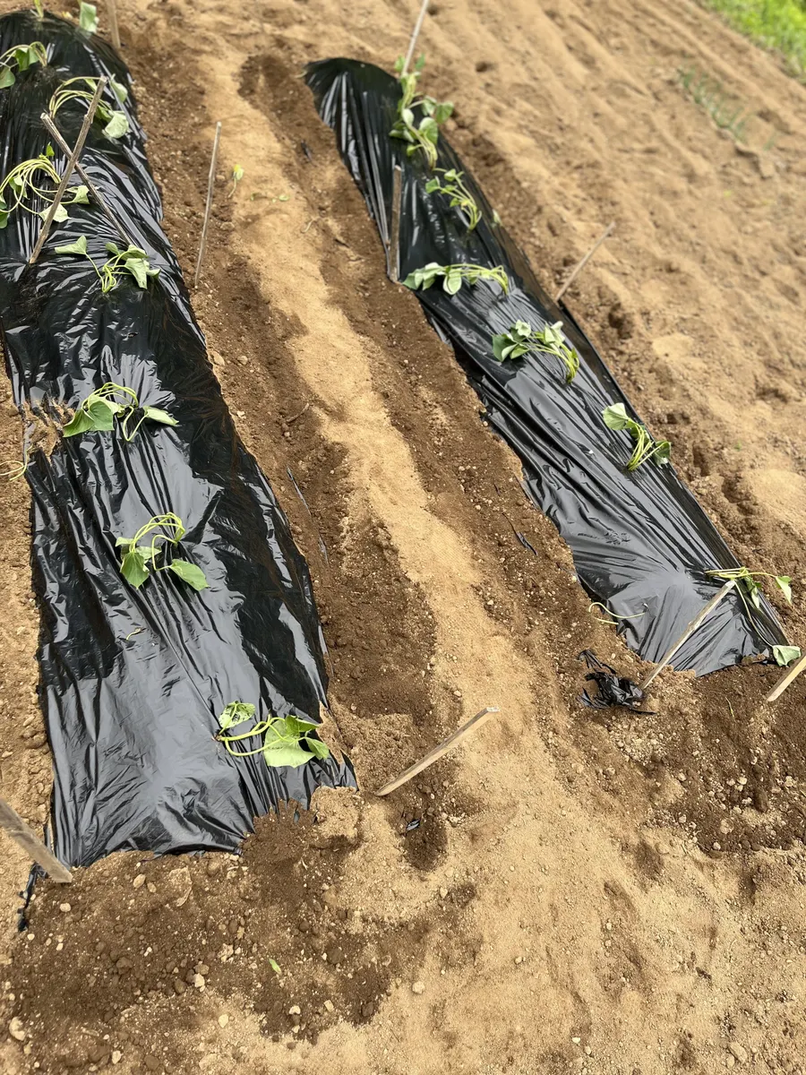 おまけで※すずほっくりという新品種の苗を3本、苗やさんからいただいて、、一緒に植えてみました(ワクワク楽しみ)