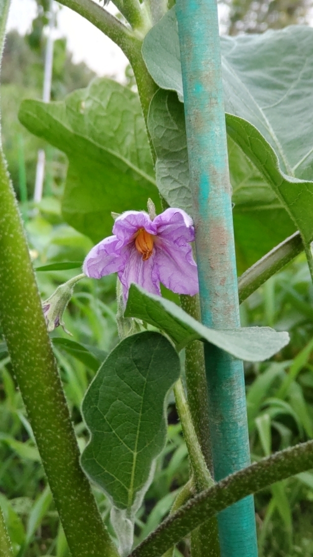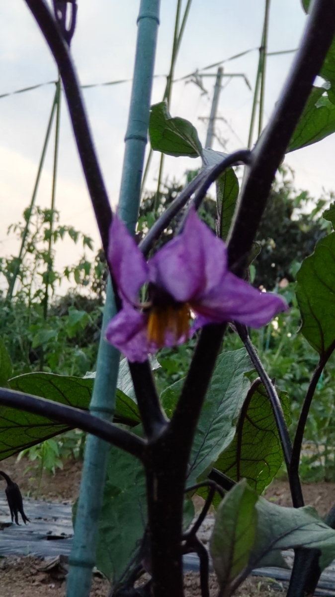 先週の日曜日畑に行ったら家庭菜園キャンペーンに応募した 白いナスに花が咲いていました 😊
