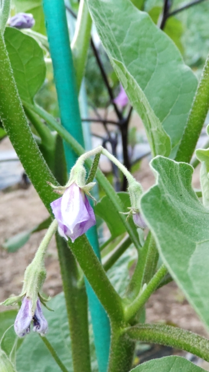 白ナスの花は普通のナスの花よりだいぶ薄い紫ですね❣️