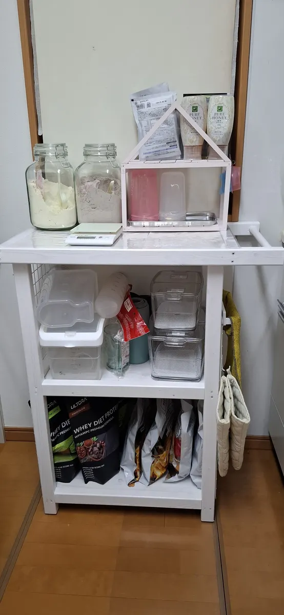 私もキッチンワゴン1つ目はガーデニング用に、2つ目はキッキン用に一回り小さく真似っ子で白で作りましたよ🥰ポットやノンフライヤー、ブランダー置き場に活躍してくれてます💞