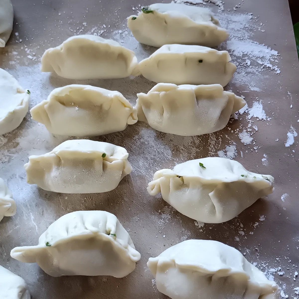 投稿を表示自作のニラを使っての手作り餃子🥟、美味しそうですね たくさん食べちゃいますね😊