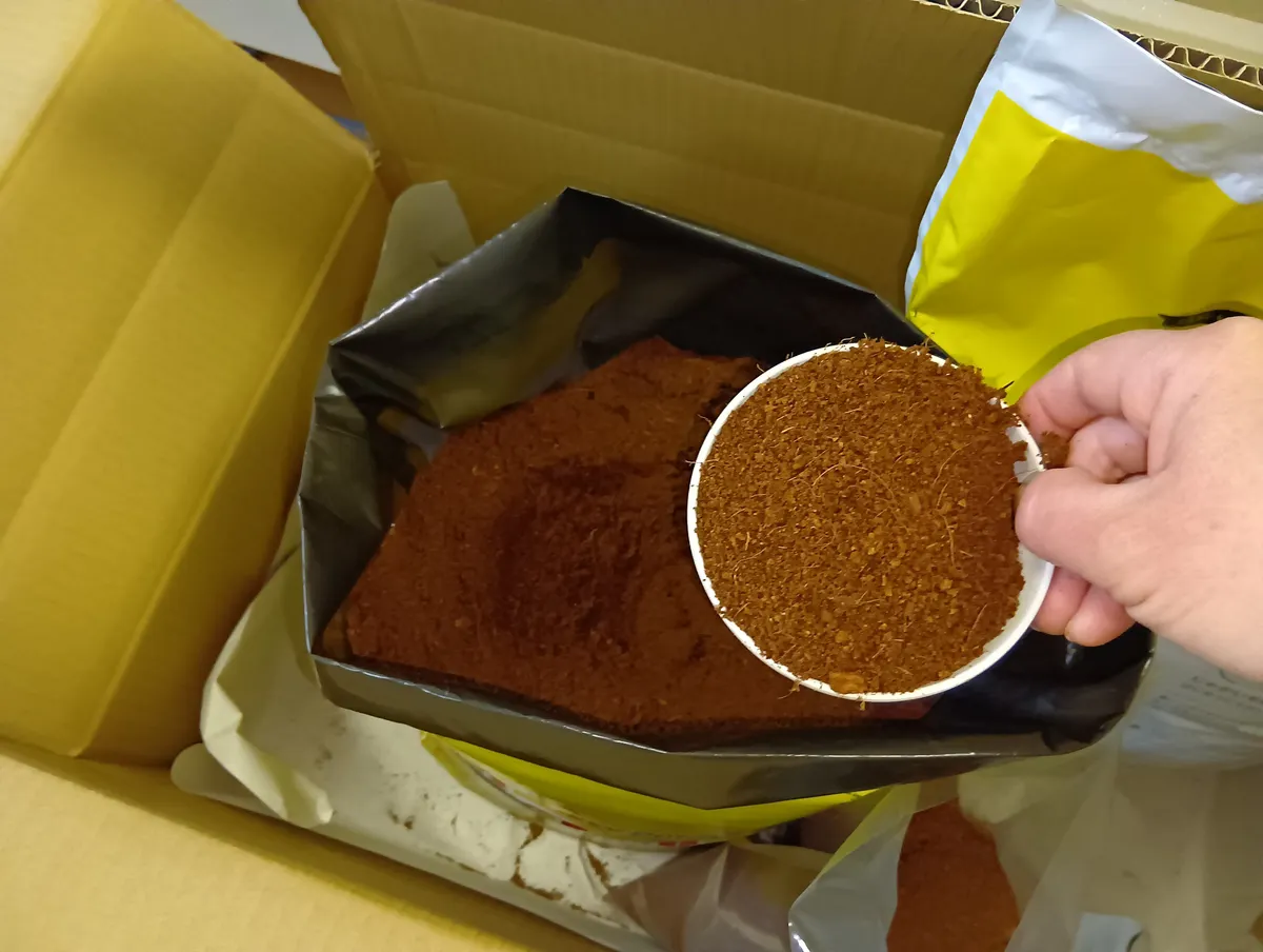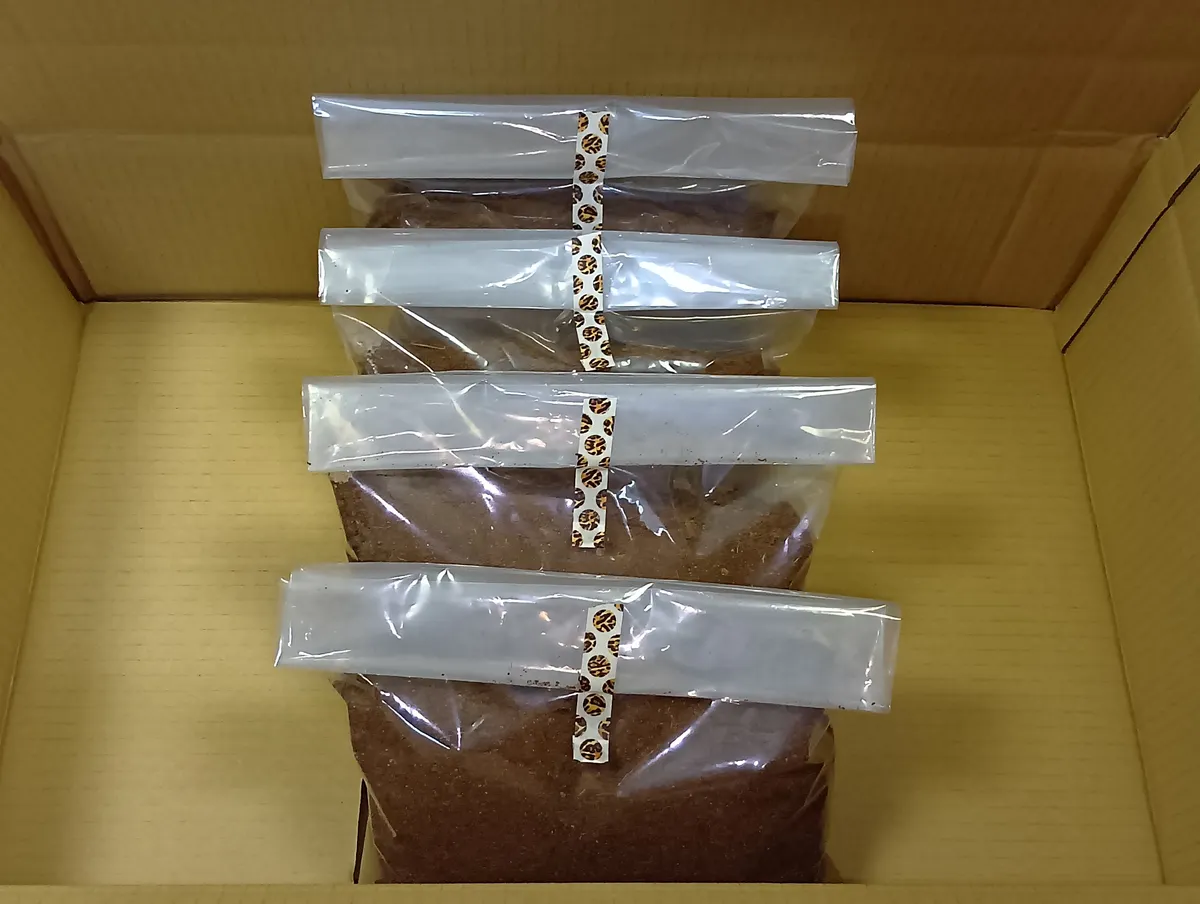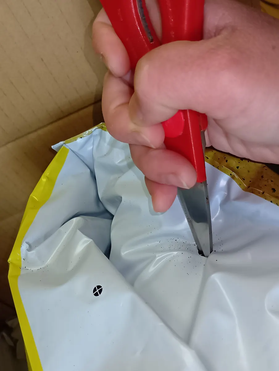 ②種芋を埋めるための土を2L取り出します。これはすぐに使うので、袋を閉じなくて良いです。