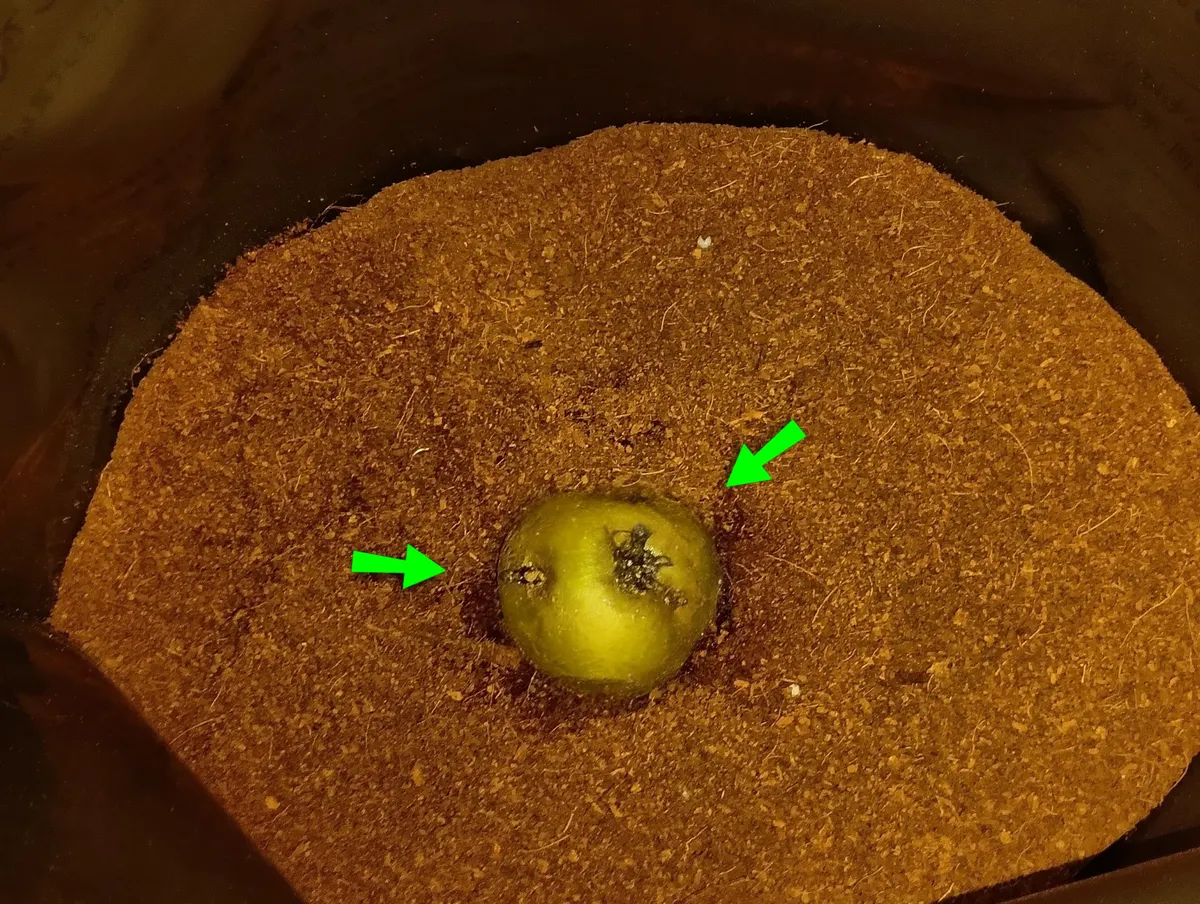 お日様の光を浴びた芽は、黒くなって硬く引き締まり、丈夫な芽になりました。皮もかなり緑色になります。食べたらアカーン!なソラニン、チャコニンと言う毒素なのですが、毒素は抗菌の役目をし、腐りにくい種芋になるそうです。すごいわ〜😃👏
