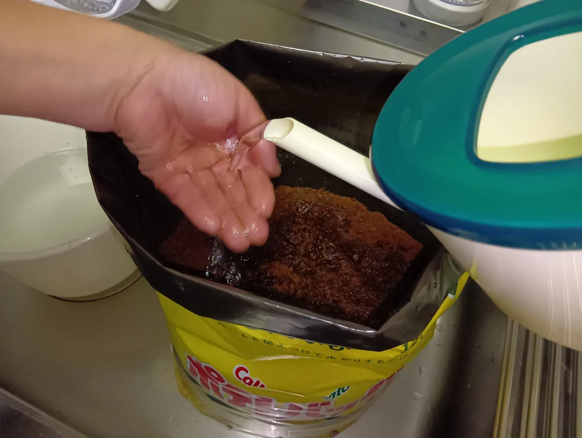 次は植え付け前の土の準備です。実はこれ、袋の取説にはありません。YouTubeからの受け売りです😁