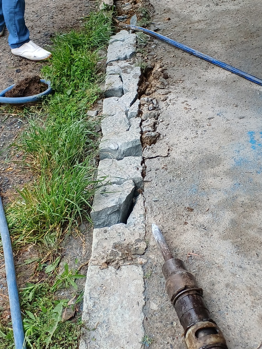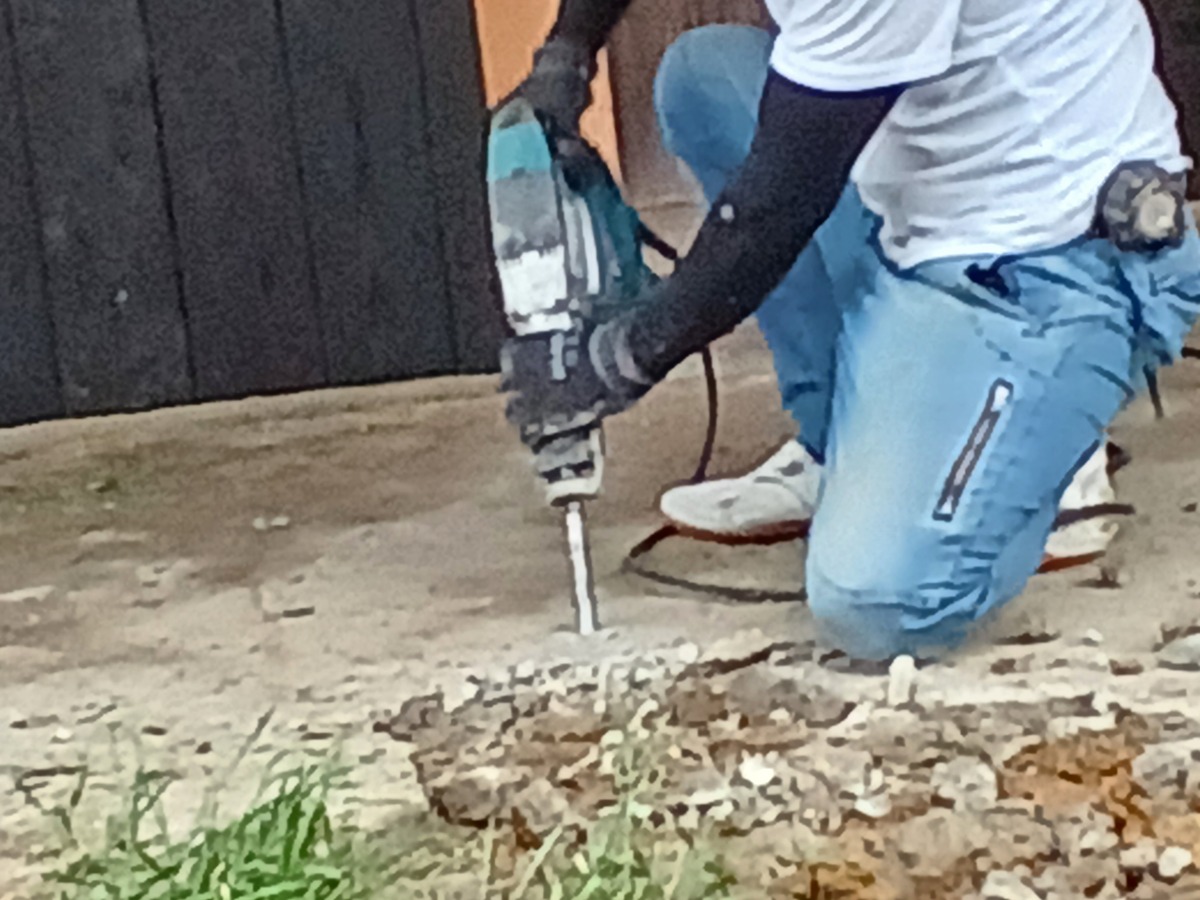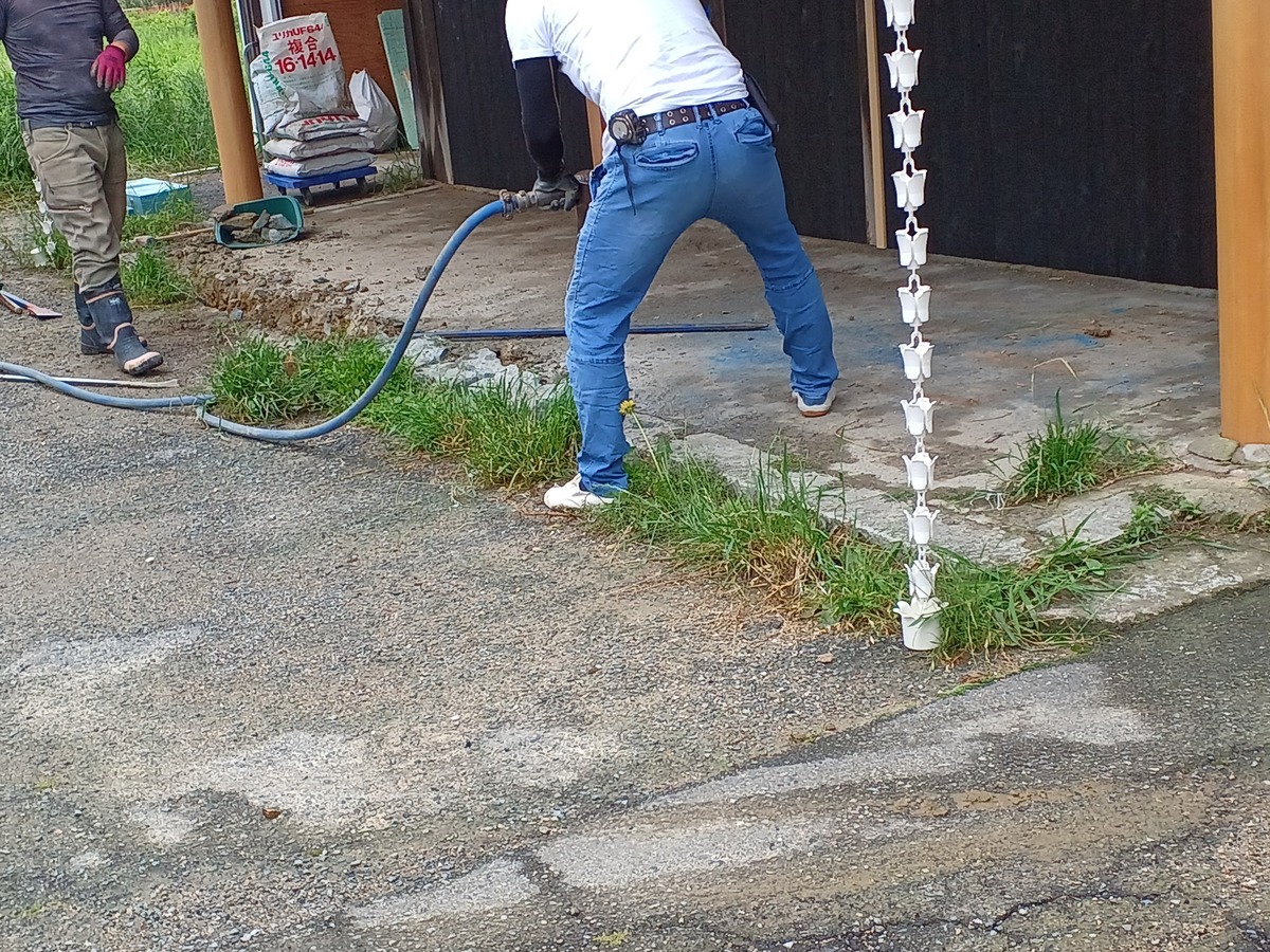 外では左官屋さんがコンクリートはつっています。before
