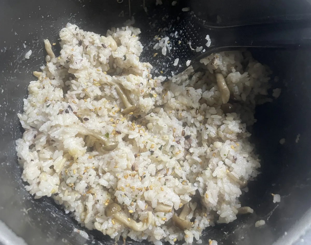 洗った米に調味料①としめじを入れて🍄🟫➰✨