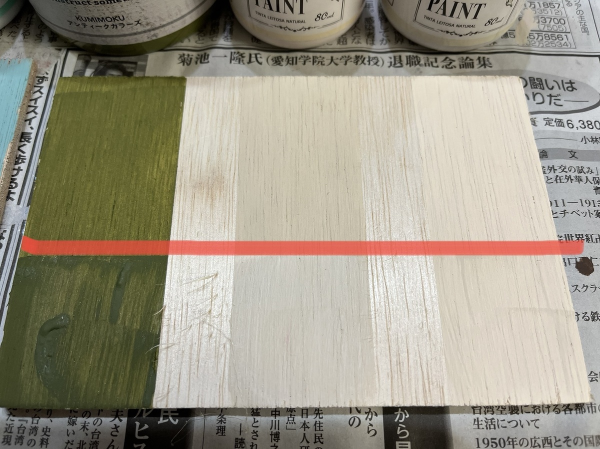 赤線より下は塗料→ひび割れ→塗料の順で塗ったもの。