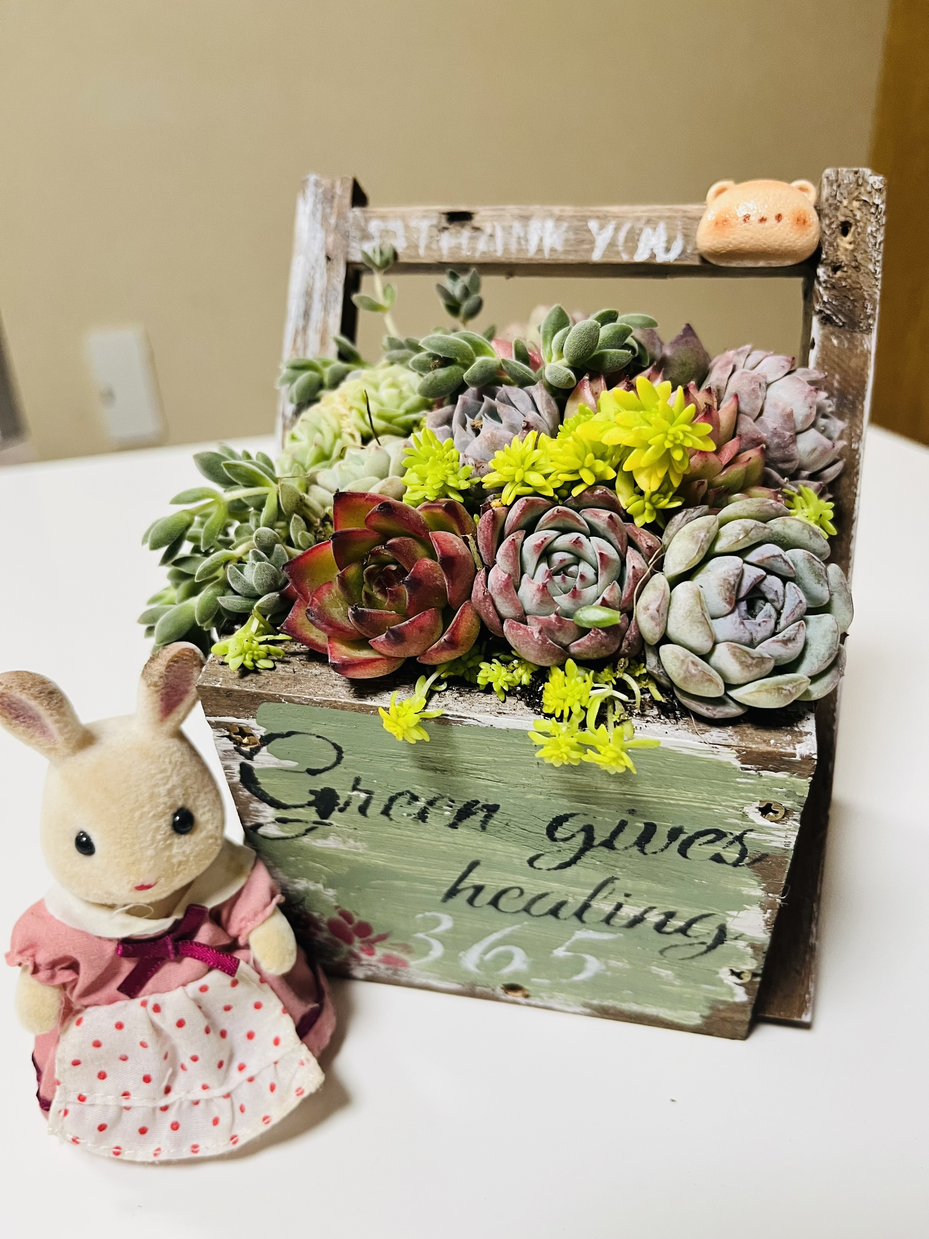 木製のプランターとても可愛らしいくて多肉ちゃんとの相性もピッタリですね。😌🌸💕