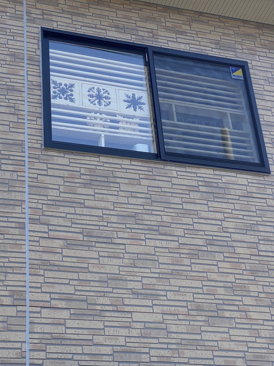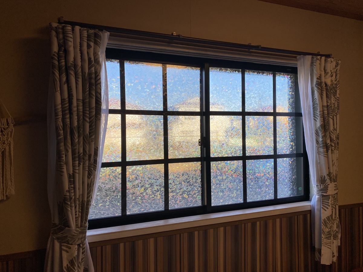 実は窓に、黒のマスキングテープを格子状に貼りまして🤗