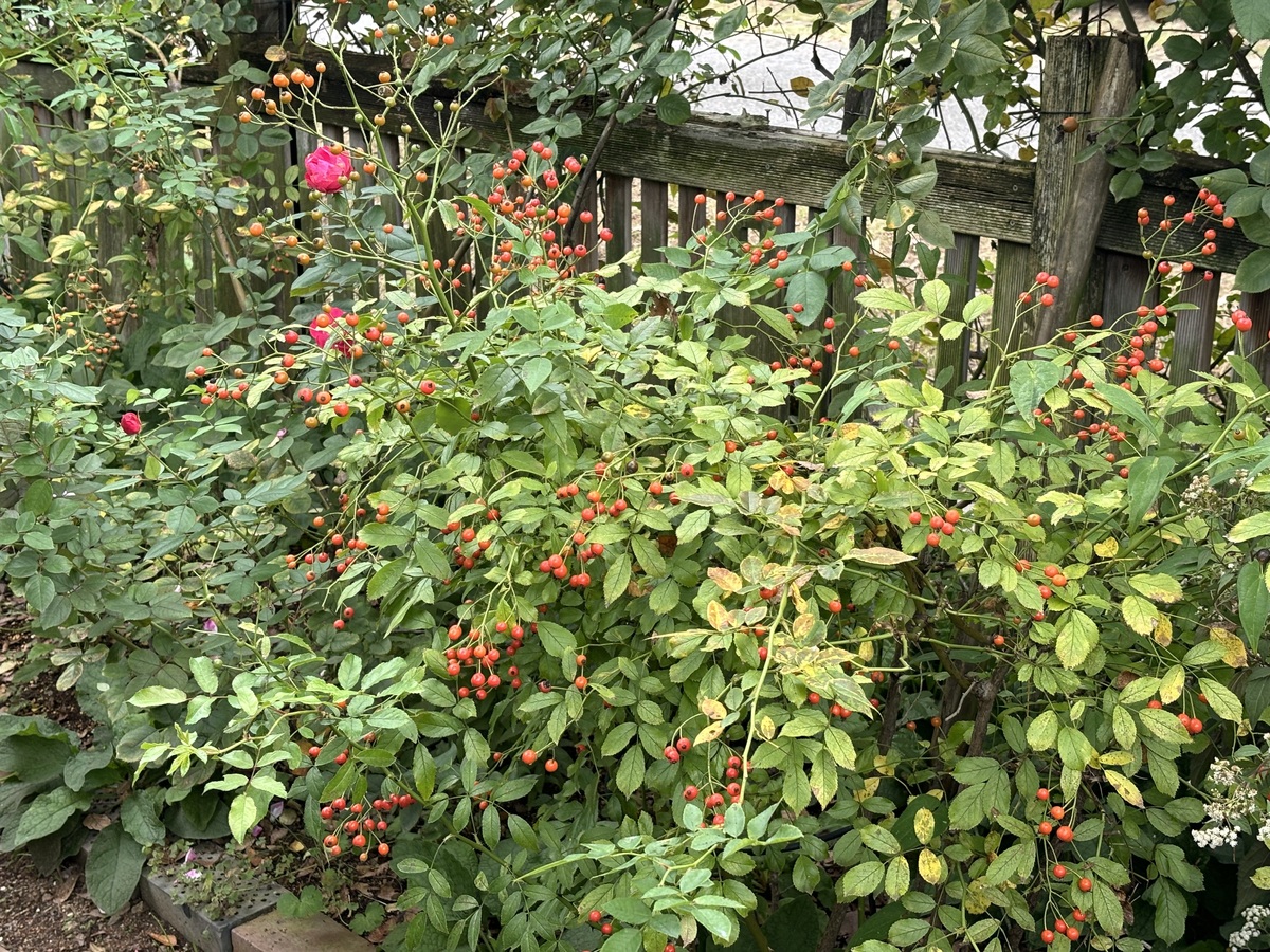 花満開!の春のお庭も良いですが、秋の深みのある薔薇の色やローズヒップ、しっとりとしたお庭はやはり心落ち着いて良いものですね☺️