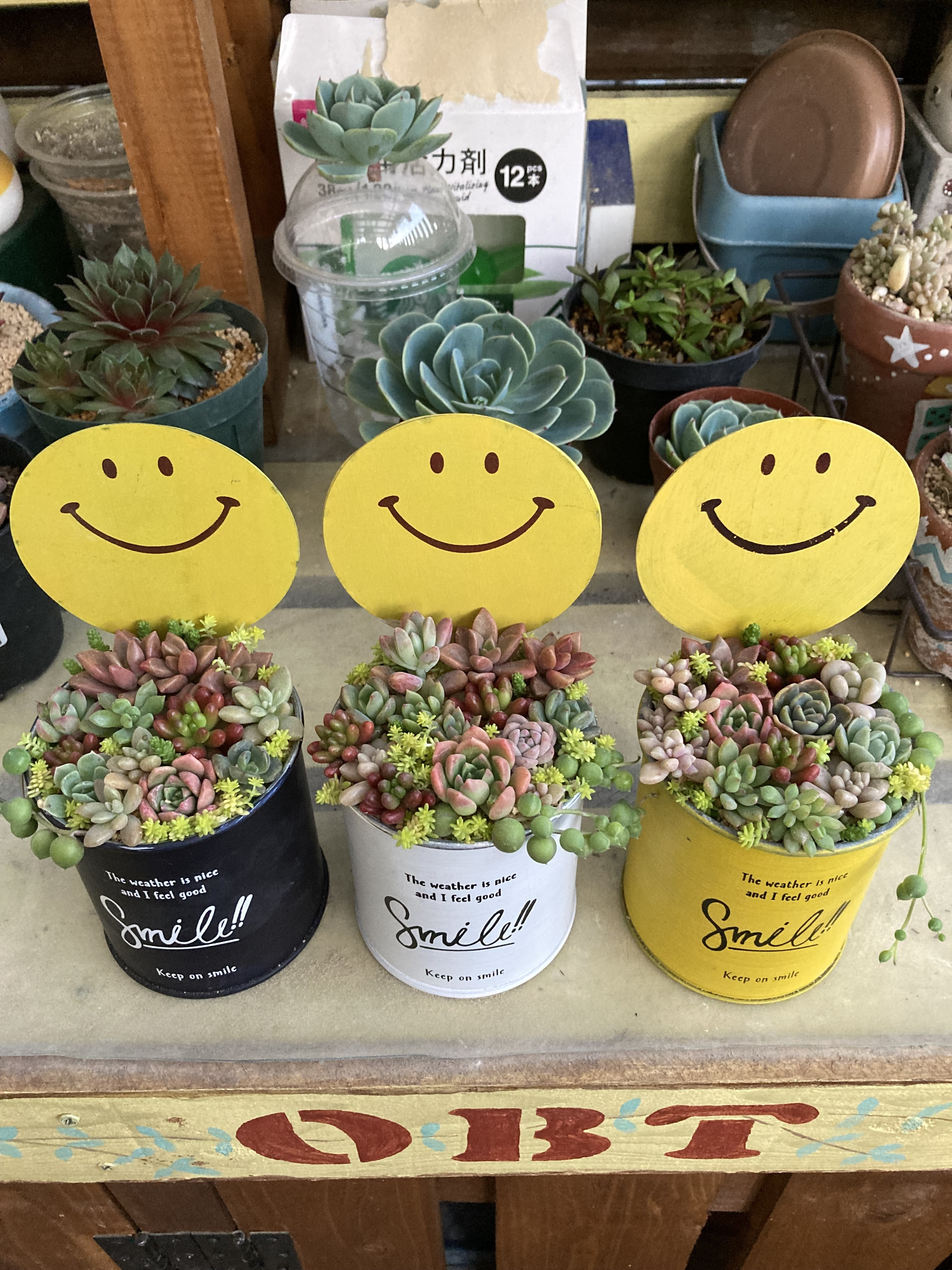 投稿を表示色違いのスマイル缶に寄せ植え、とっても可愛いです😍❤️