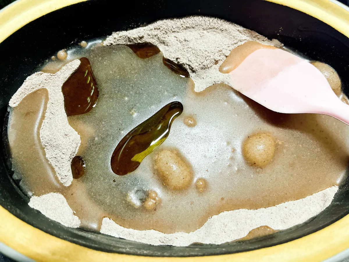 もったりしすぎて水分が足りなさそうであれば、少しづつ水を加えて調整してください。
