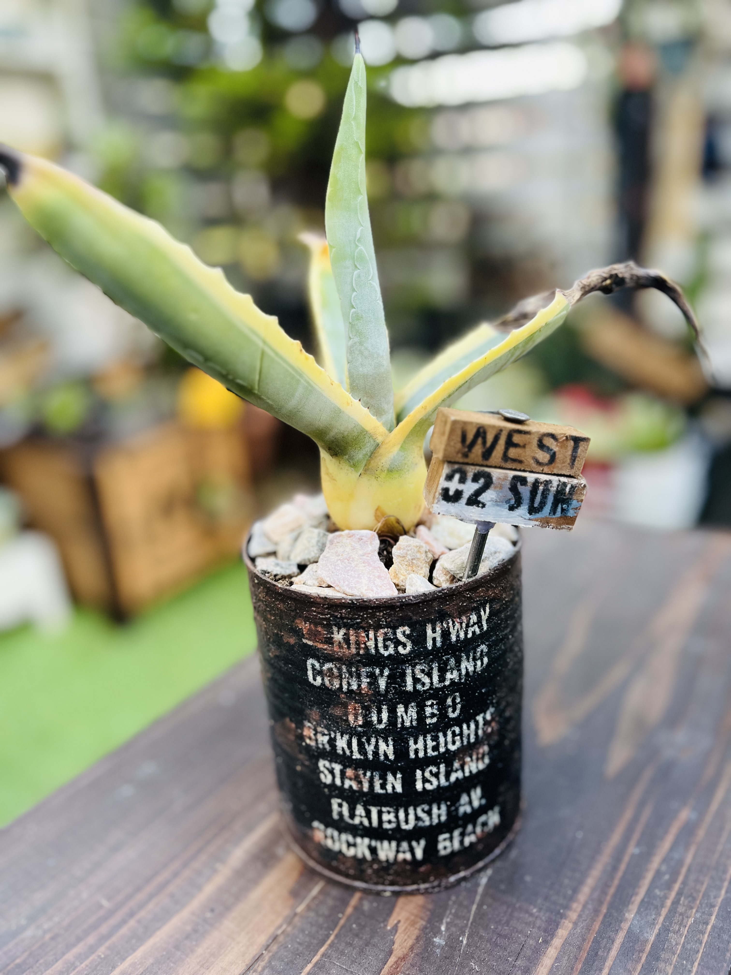アガベすぐに根っこが張るからもう少し大きい入れ物のの方がいいかもしれないよ?根っこがパンパンに張ってせっかくのリメ缶から抜けなくなっちゃうかも💧