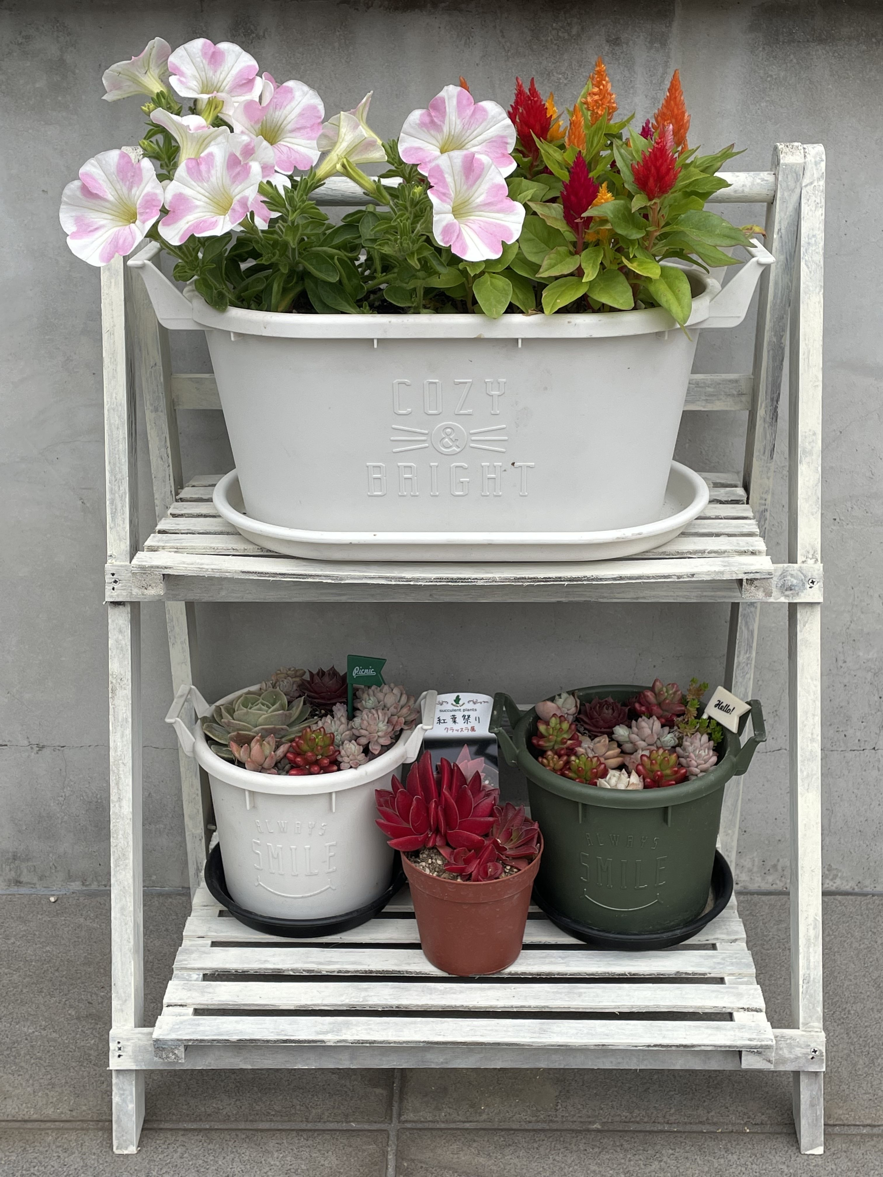 トップ > その他 > 庭に少しずつお花...そして、多肉沼のはじまりかな🙄 🧸MAKO 2022/04/16 09:31 庭に少しずつお花...そして、多肉沼のはじまりかな🙄 先日、ダイソーさんで、ブラウンの折りたたみラックを購入。 そのままでも良かったのですが、ビスで数カ所固定して、ホワイトを塗って、ちょっぴり加工。 上のお花さん達は、カインズさんで、鉢とお花を買って、寄せ植え😊 下の多肉さん達は、お友達のお仲間さんが作ってくれました💕 お花のチョイスは、子供がこれと❗️ はい🙋愛情たっぷり注ぎます❤️ いいね 共有する 共有する X LINE リンクをコピー コメントする 0 件の返信 (新着順)