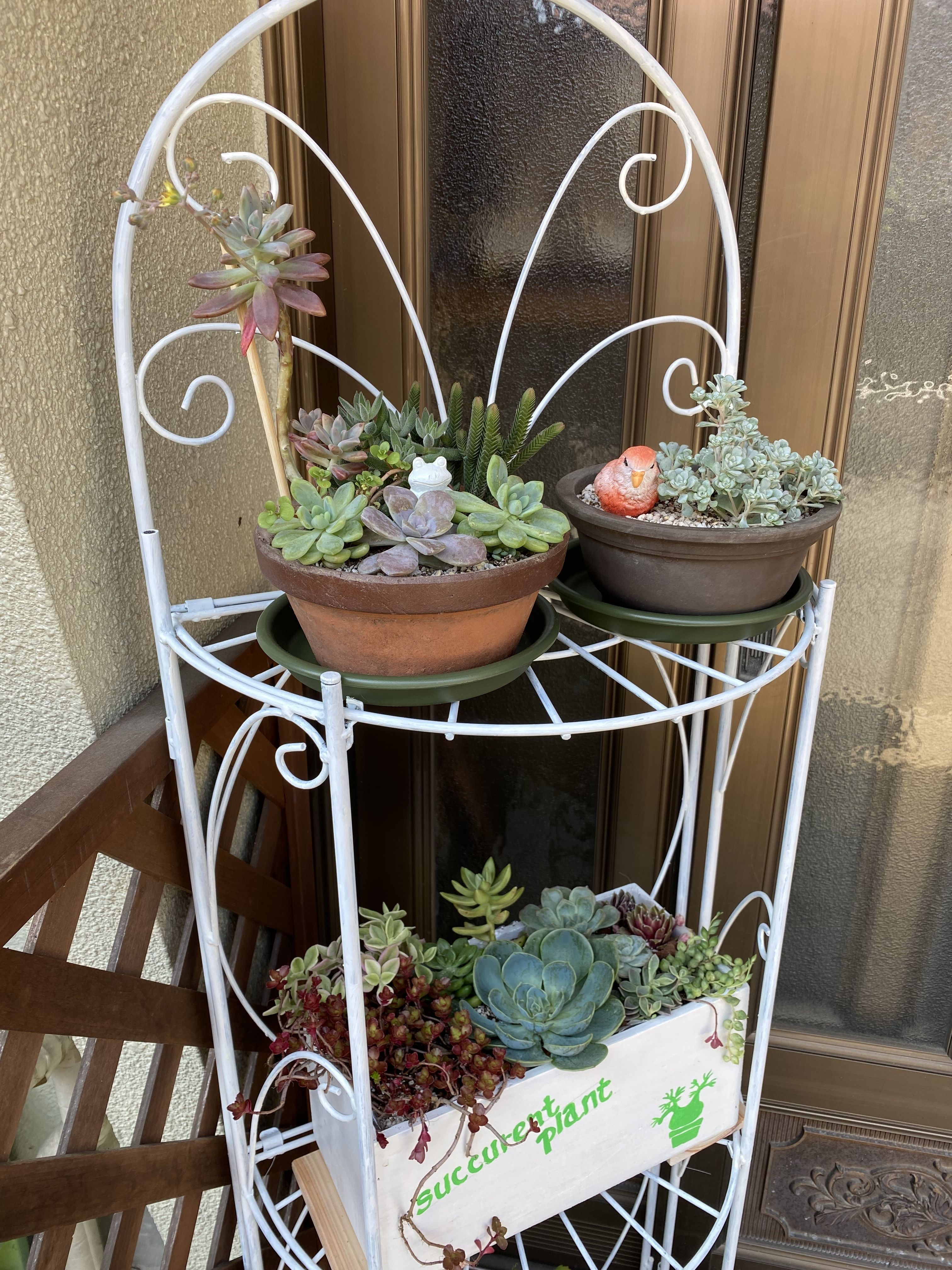 白いペイントで多肉ちゃんたちが映えますね!