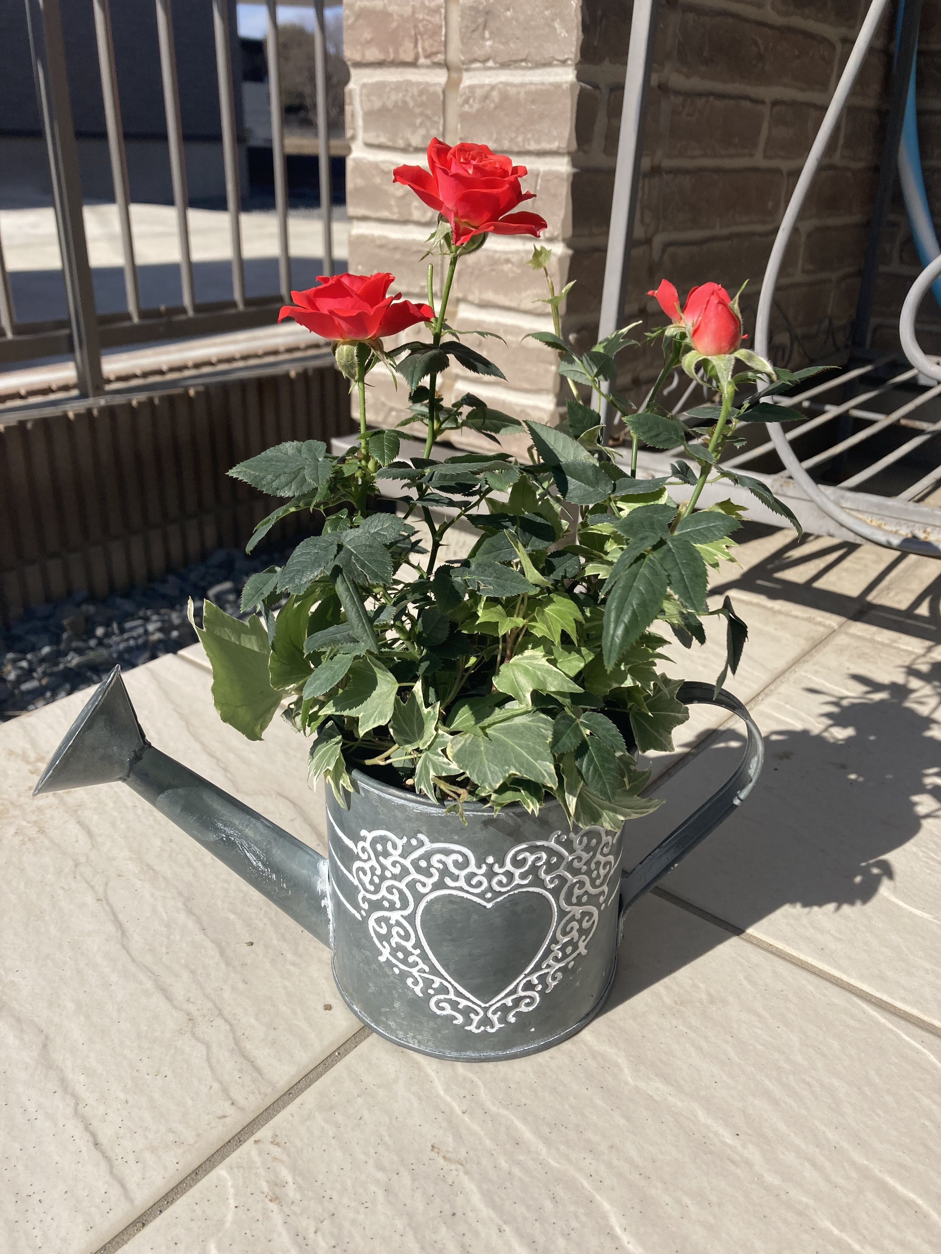 ブリキポットの赤い🌹にも、癒されます❣️