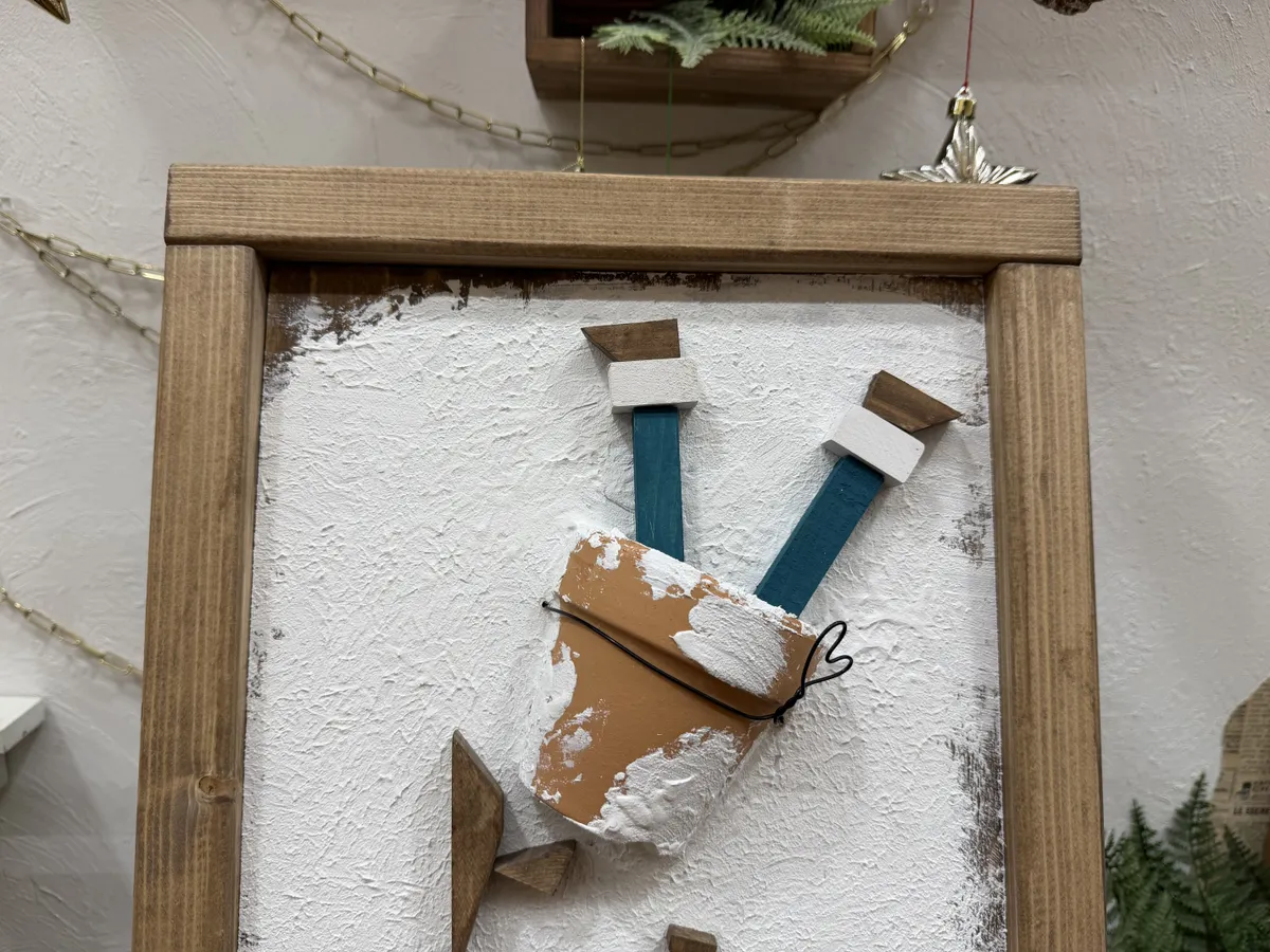 サンタが煙突にダイブしてる❗️それを見てるビスの目のトナカイの表情が可愛い‼️雪だるまのハートのボタンが可愛い‼️おうちで手を加えられたところに、感動してます❗️