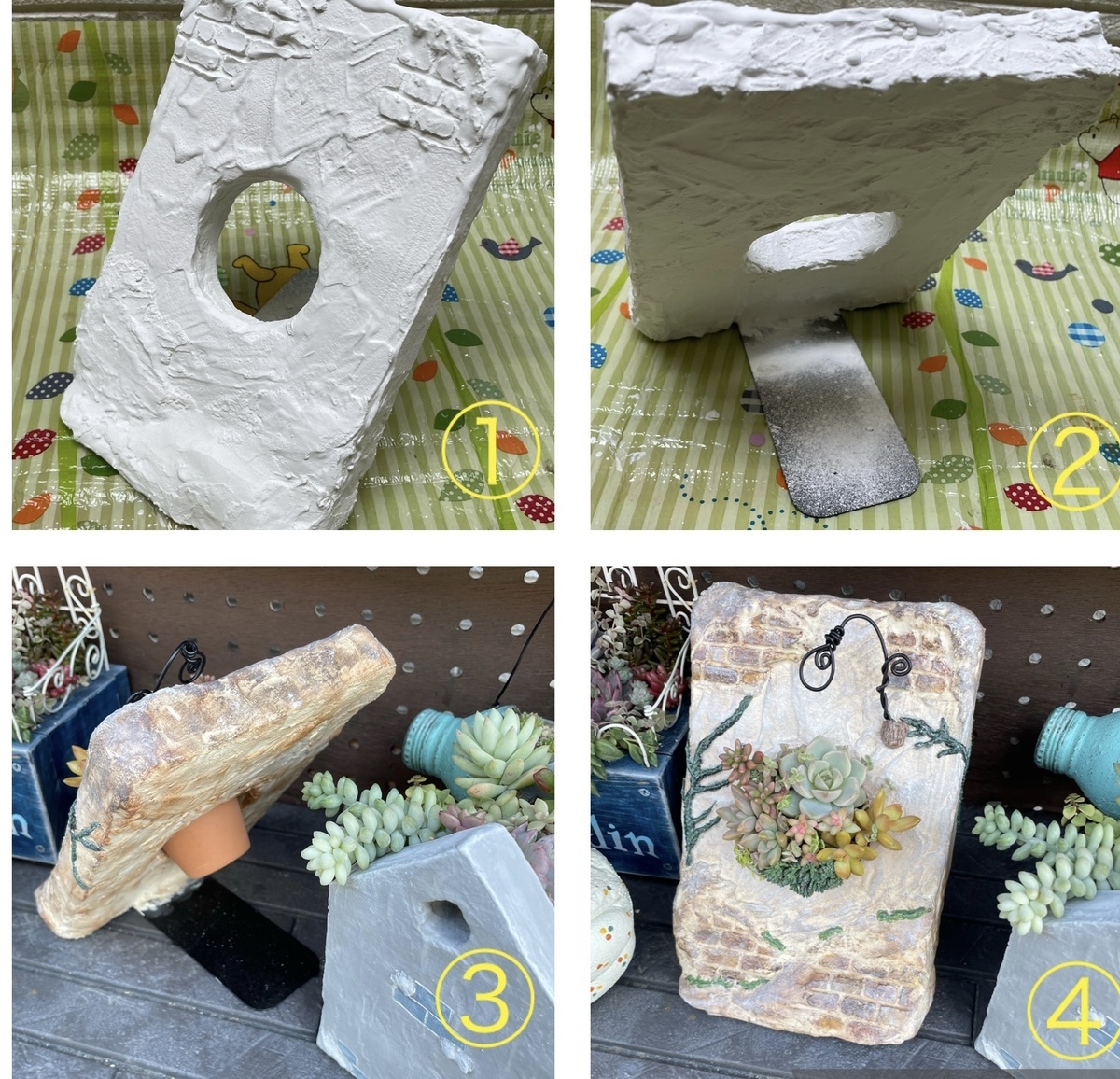 以前、葉牡丹リースをモルタルデコのフレームに入れて投稿したんですが、今回は小さな多肉鉢を入れるフレーム作ってみました✨