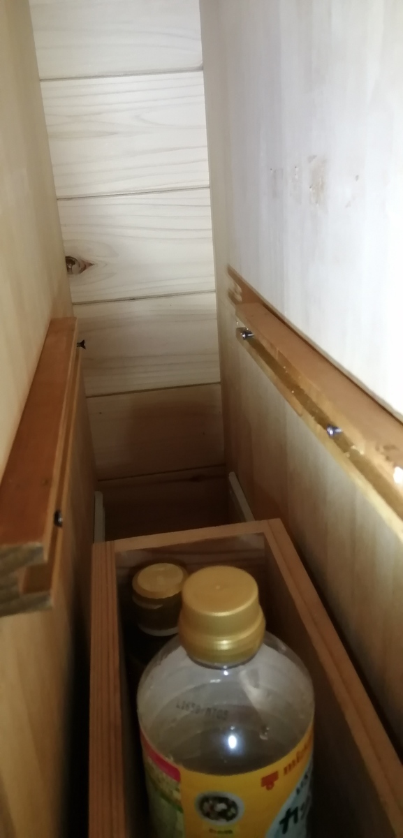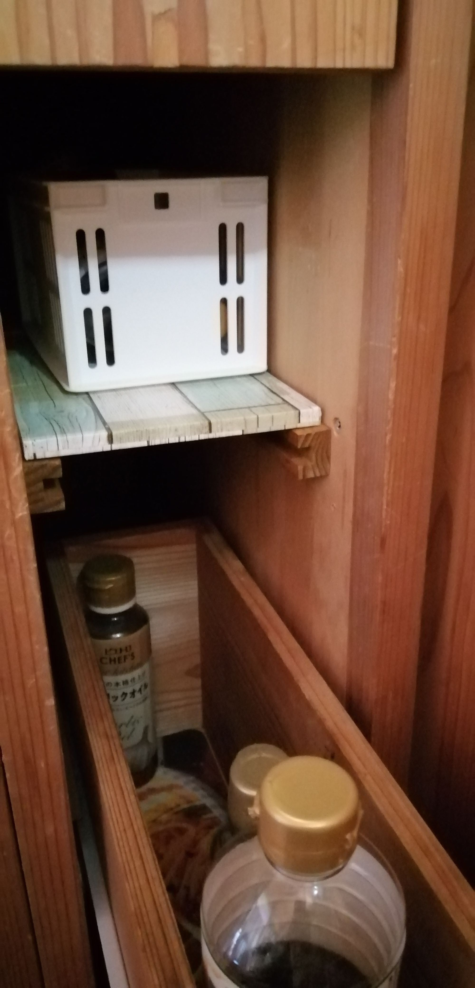 キッチンの、調味料入れるところがもったいないな~って思っていて、昨日までは、Seriaで買った飾り棚?みたいなものをレールにして引き出しのようにしたいけどできなかったわぁっていう状態であきらめてほっといたのですが、やっとどうにかしたいと思えるように💡