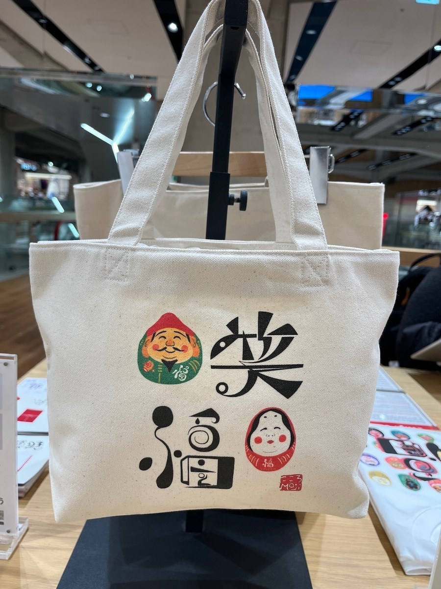 ユニクロTOKYO店で「こころMojiグッズを自分オリジナルのレイアウト」をしてトートバックに印刷してもらいました😃🎶