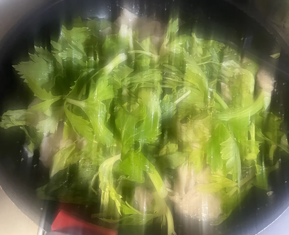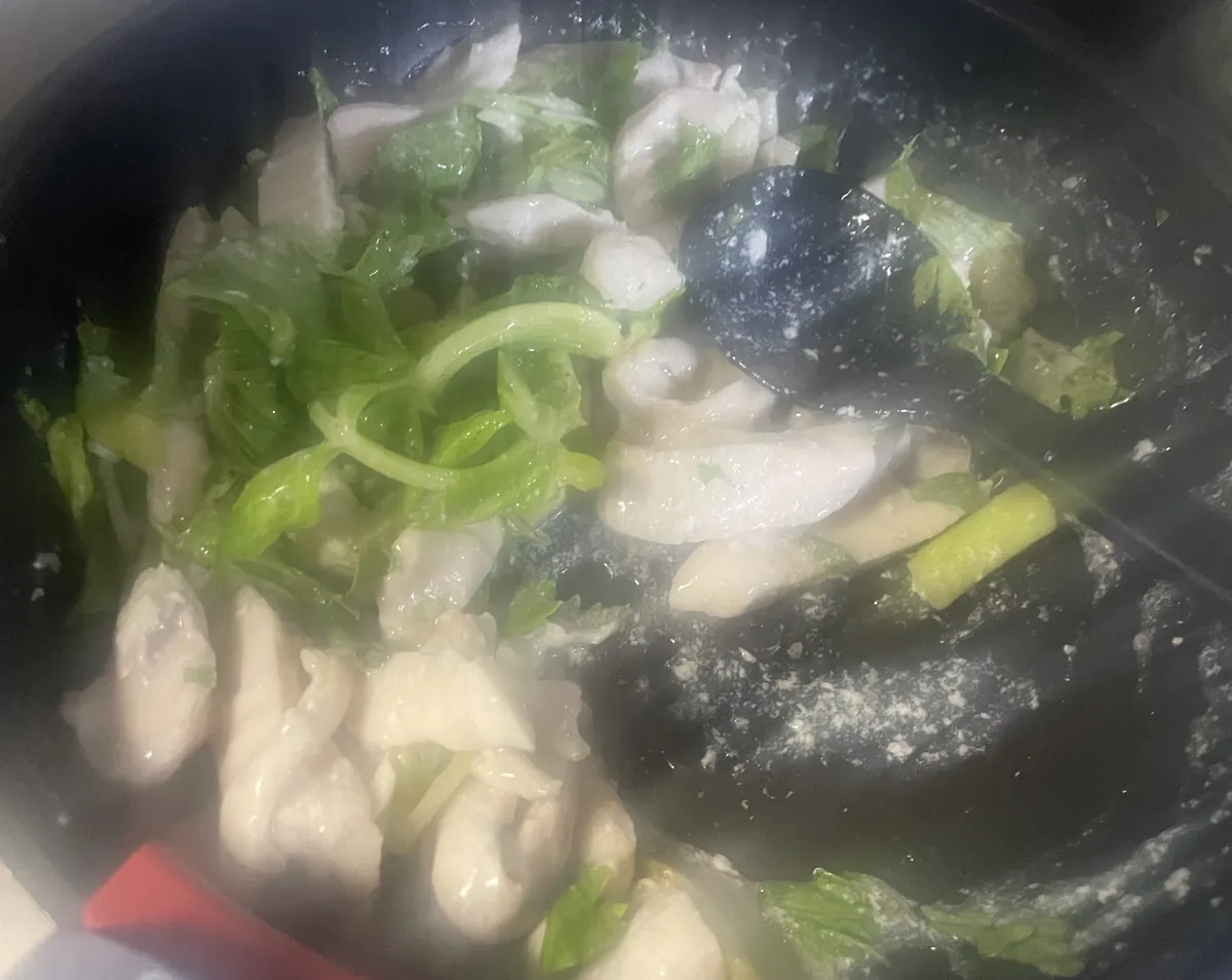 鶏胸肉とセロリの葉の部分だけの残機があったので、簡単な餡掛けにして頂いたよぉ〜😋🐓🌿✨
