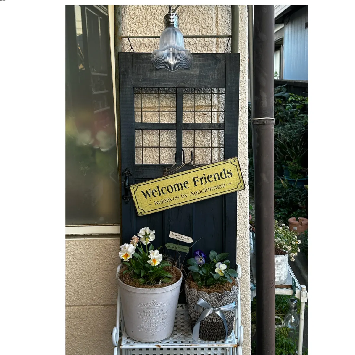 スリーピーで買ったソーラーのランプが、このドアに合っている気がします💕✌️