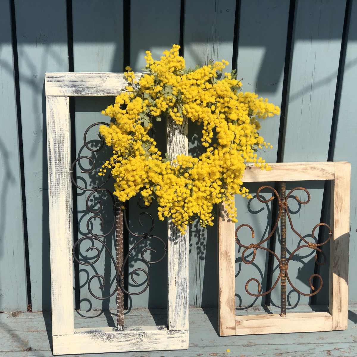 今日は良いお天気すぎて、3個目のリース持って行ったら、先に作ったリースはもう縮んでたわ💦