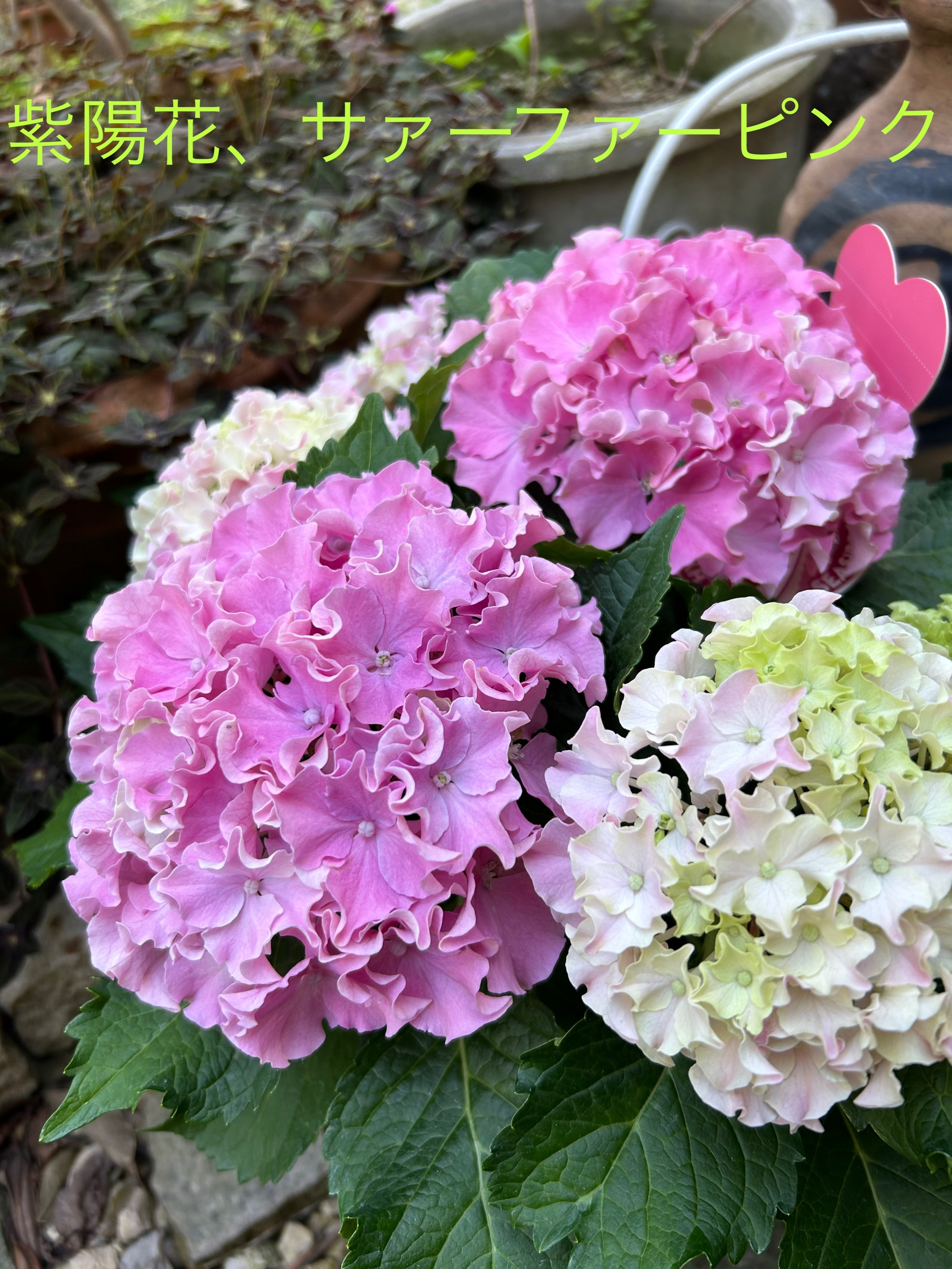 特に母の日用の プレゼントの紫陽花には、日頃あまり店頭に出してない珍しいものがあるように思います。