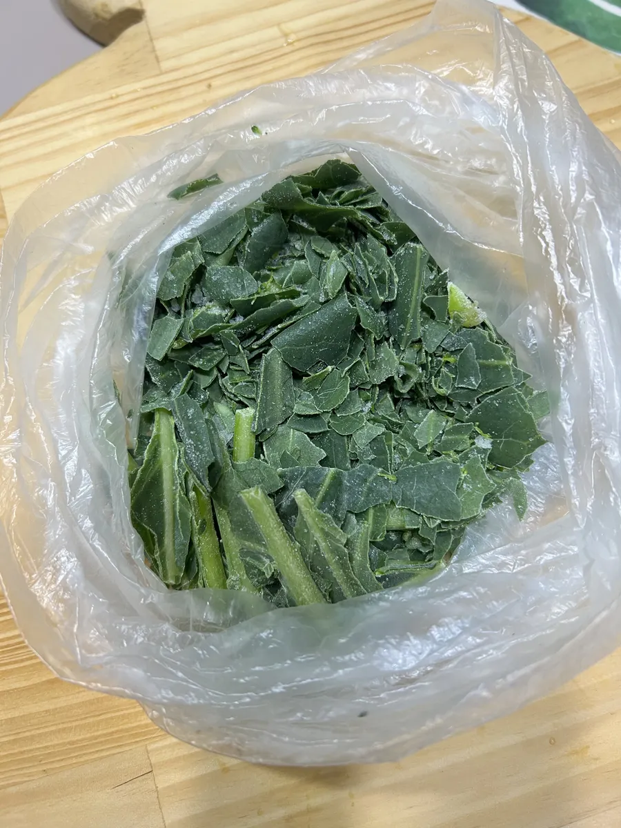 洗って冷凍するとパリパリになって場所も取らないし 細かくなってスムージーに使いやすいですね🥰
