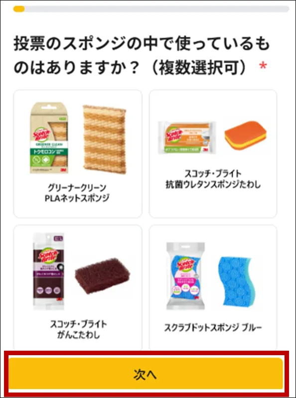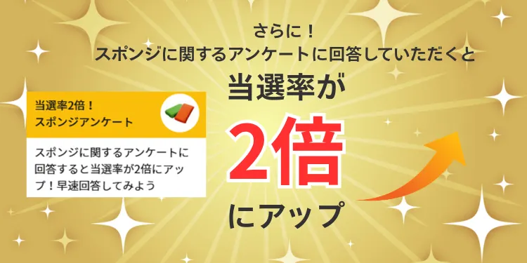 スポンジに関するアンケートに回答すると当選率が2倍にアップ!是非アンケートもお忘れなくご回答ください💁
