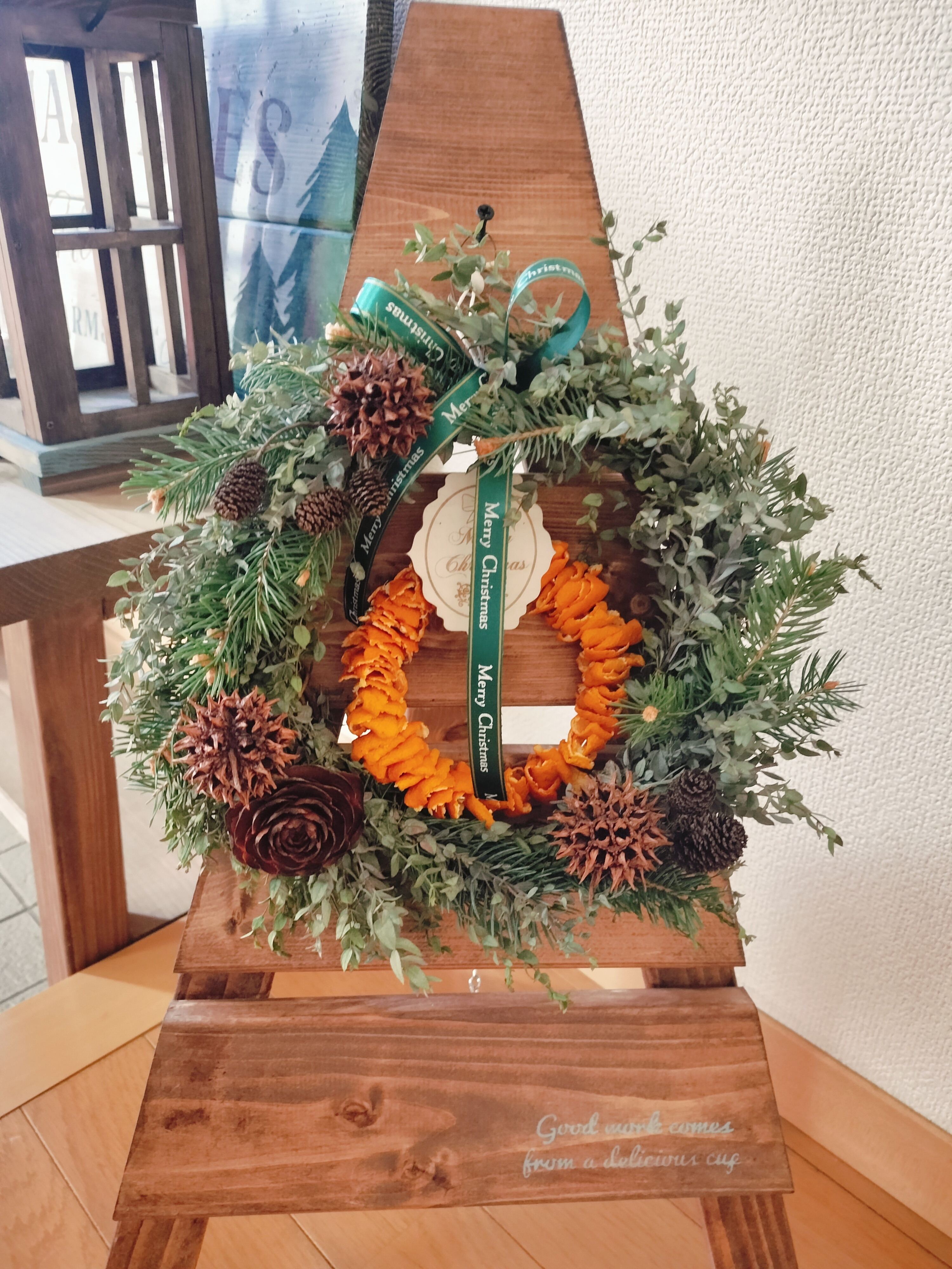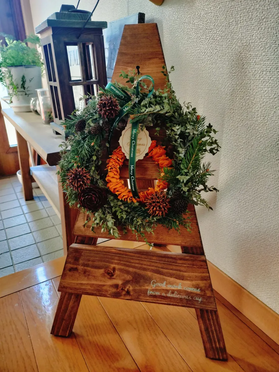 投稿を表示剪定枝とは思えない素敵なリースにオレンジが加わって、鮮やかでオシャレなリースになりましたね❣️