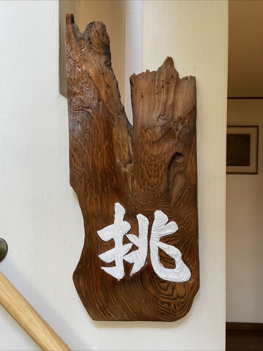この2枚のオブジェ、現在「心」は居間に、「挑」は階段途中に飾ってあります。