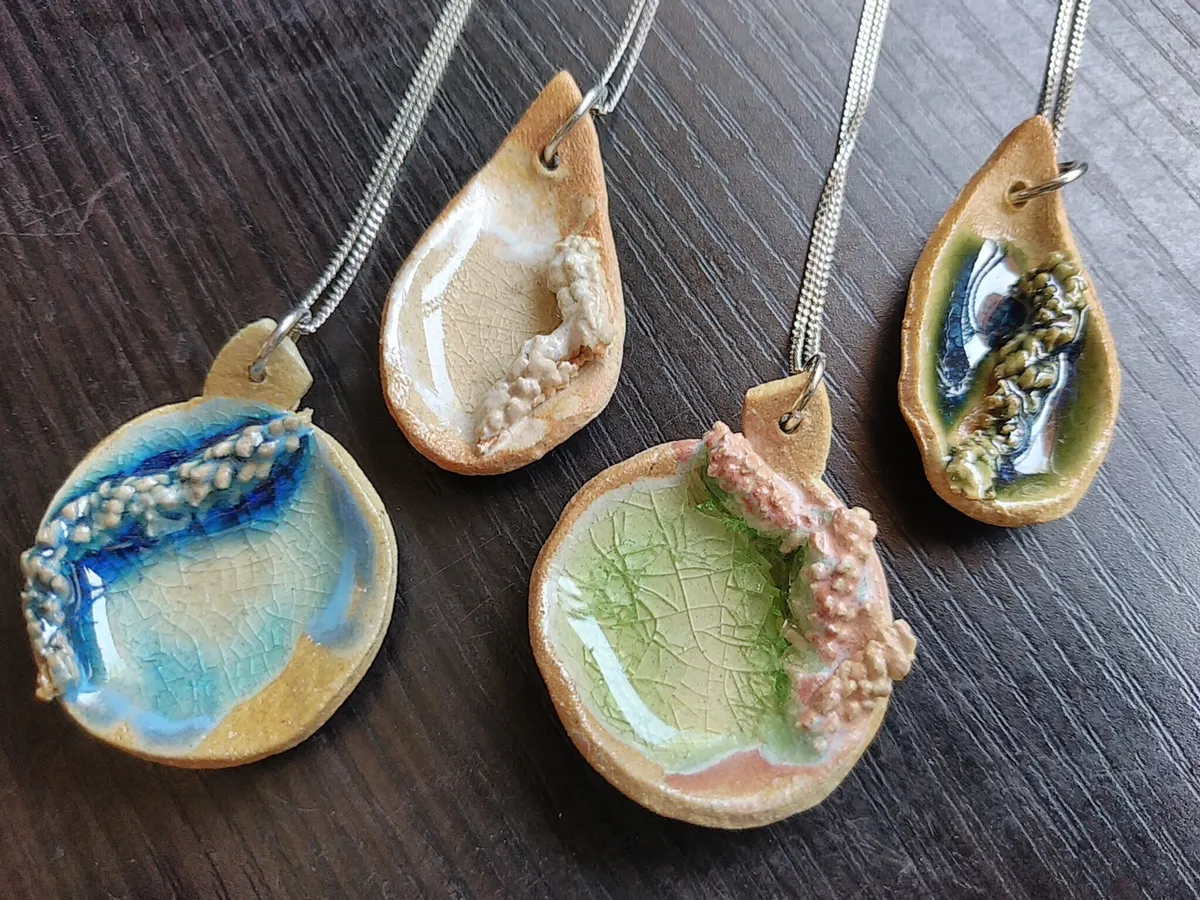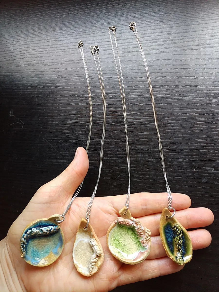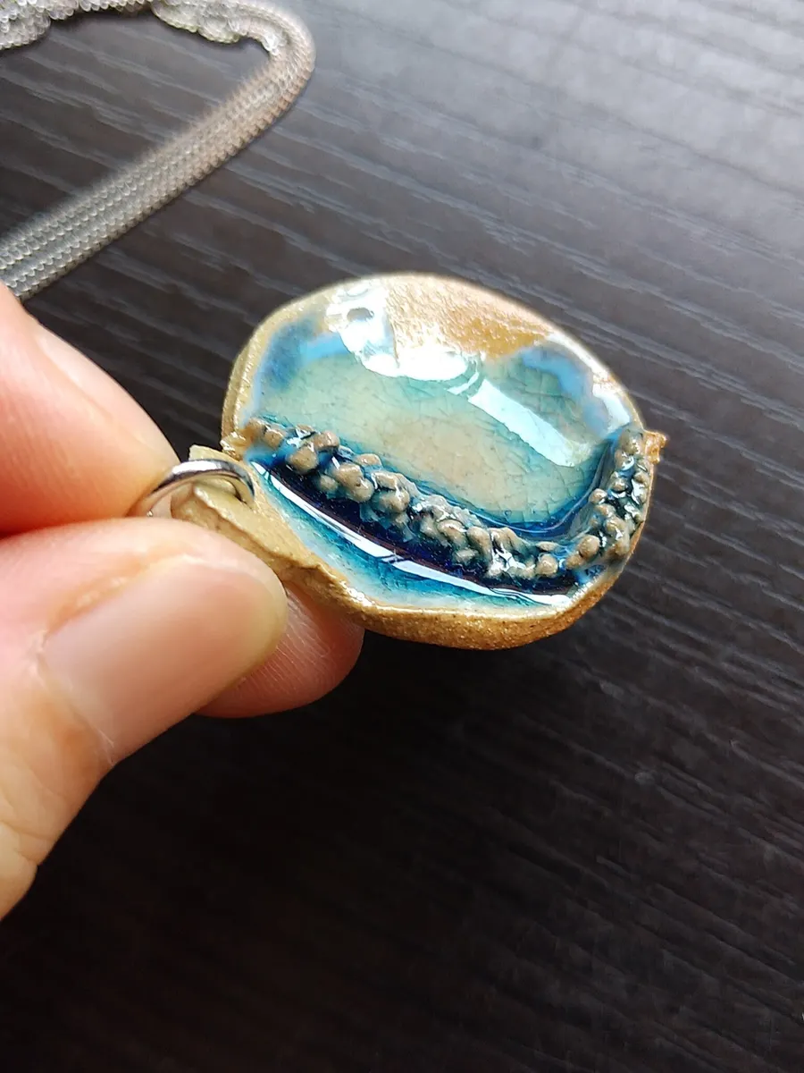 陶芸用の土でつくったトップとシルバーチェーンの組み合わせのネックレスです。