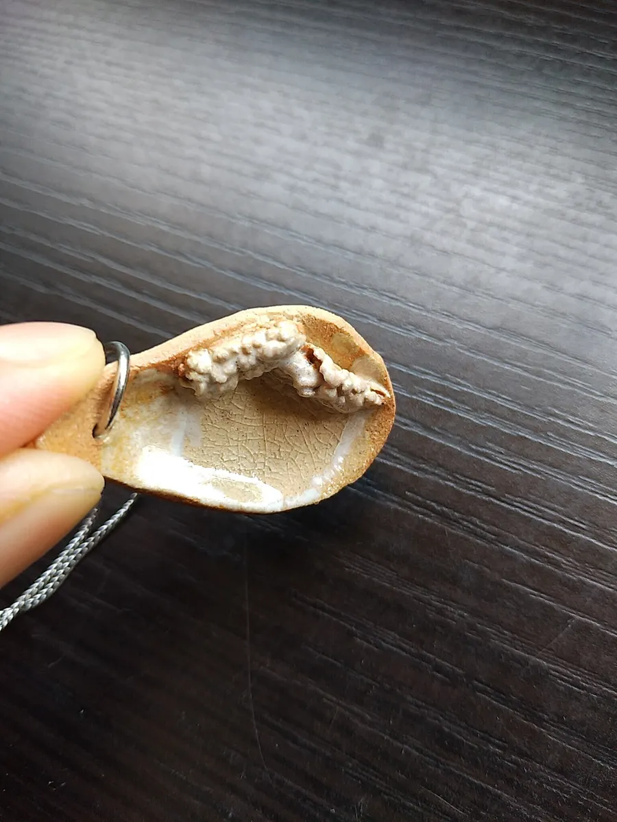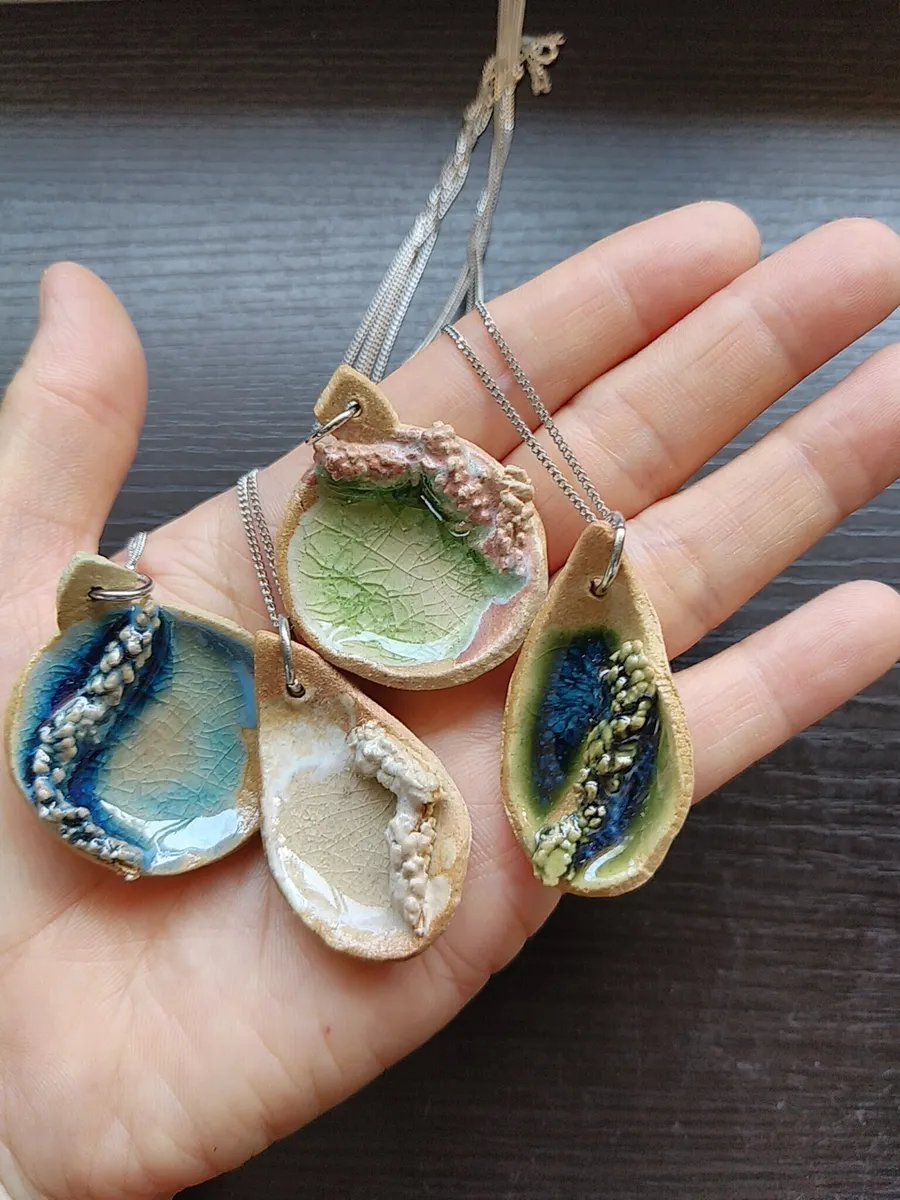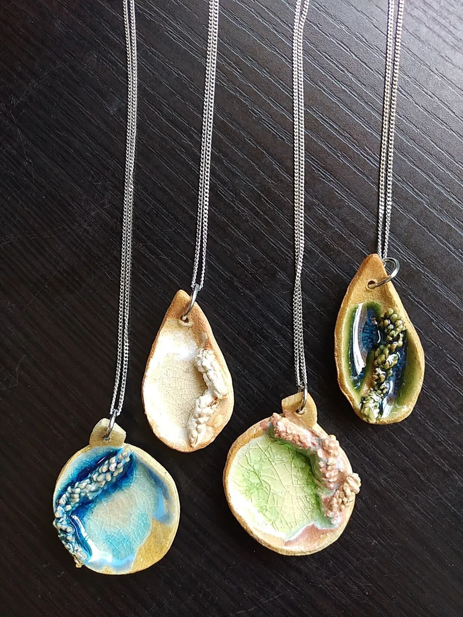 陶芸用の土でつくったトップとシルバーチェーンの組み合わせのネックレスです。