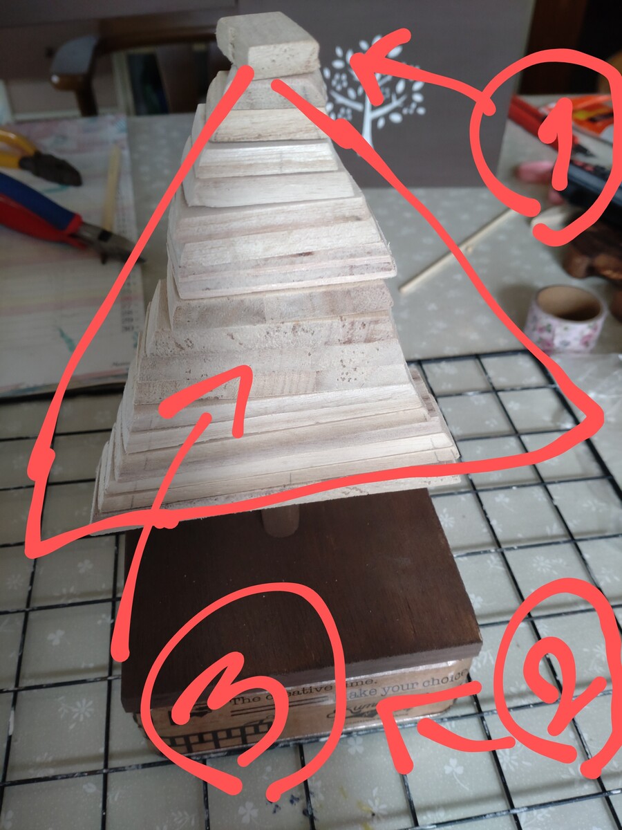 ①てっぺんは三角になるようにしたかったけど適当な端材がありませんでした。