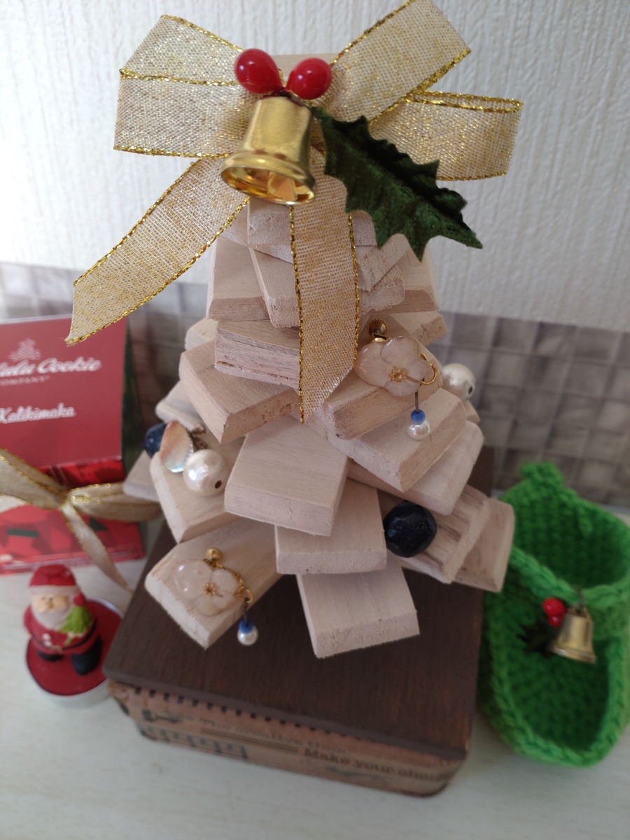 枝に穴をあけてピアスを掛けたり挿したりしてもよさげです。