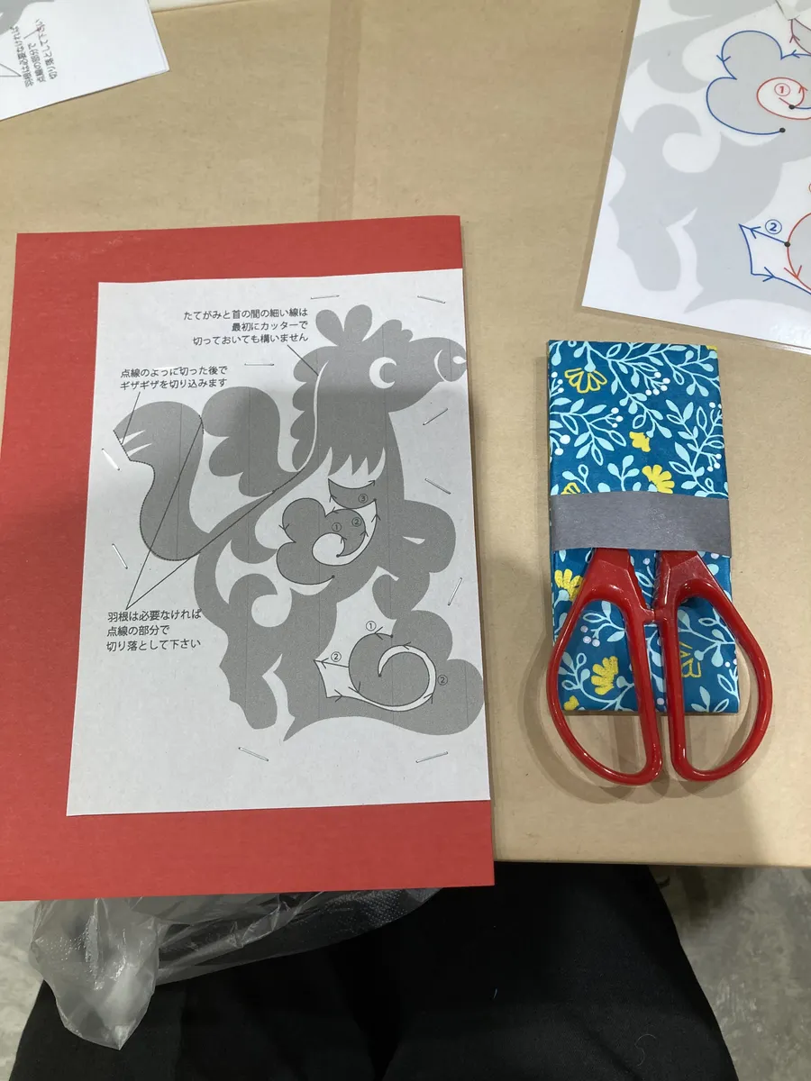 トップ > お正月DIY > キャンペーン > 切り絵「午」 もん 2025/12/28 16:44 切り絵「午」 ■作品内容 ○印良品のWS「はさみで作る切り絵」に参加しました。 紙を二つ折りにし、型紙をホッチキスで止めます。 コツはよく切れるはさみの先を小刻みに使い、紙のほうを動かすこと。これがなかなか難しい💦 (糸のこと似てますね) 細かいところはカッターで。 型紙をはずして広げると気になるガタガタも目立ちません。 台紙に貼って完成! ■工夫ポイント WSは「午」だけでしたが、帰ってから先生の見本の写真を参考に、色紙で「福」の文字をフク習してみました。 干支部門 いいね 共有する 共有する X LINE リンクをコピー コメントする 1 件の返信 (新着順) ミュートしたユーザーの投稿です。 投稿を表示 チコリ 2025/12/29 01:50 「午」も可愛いけど、やっぱり「福」の文字があった方がいいですね! 福が到来しますように✨ いいね 返信する ミュートしたユーザーの投稿です。 投稿を表示 もん 2025/12/29 12:34 チコリ そうですよね〜「福」の文字で中華モードアップ⤴️ 福よ来い来い😊 チコリさんも良いお年を💕 いいね 返信する