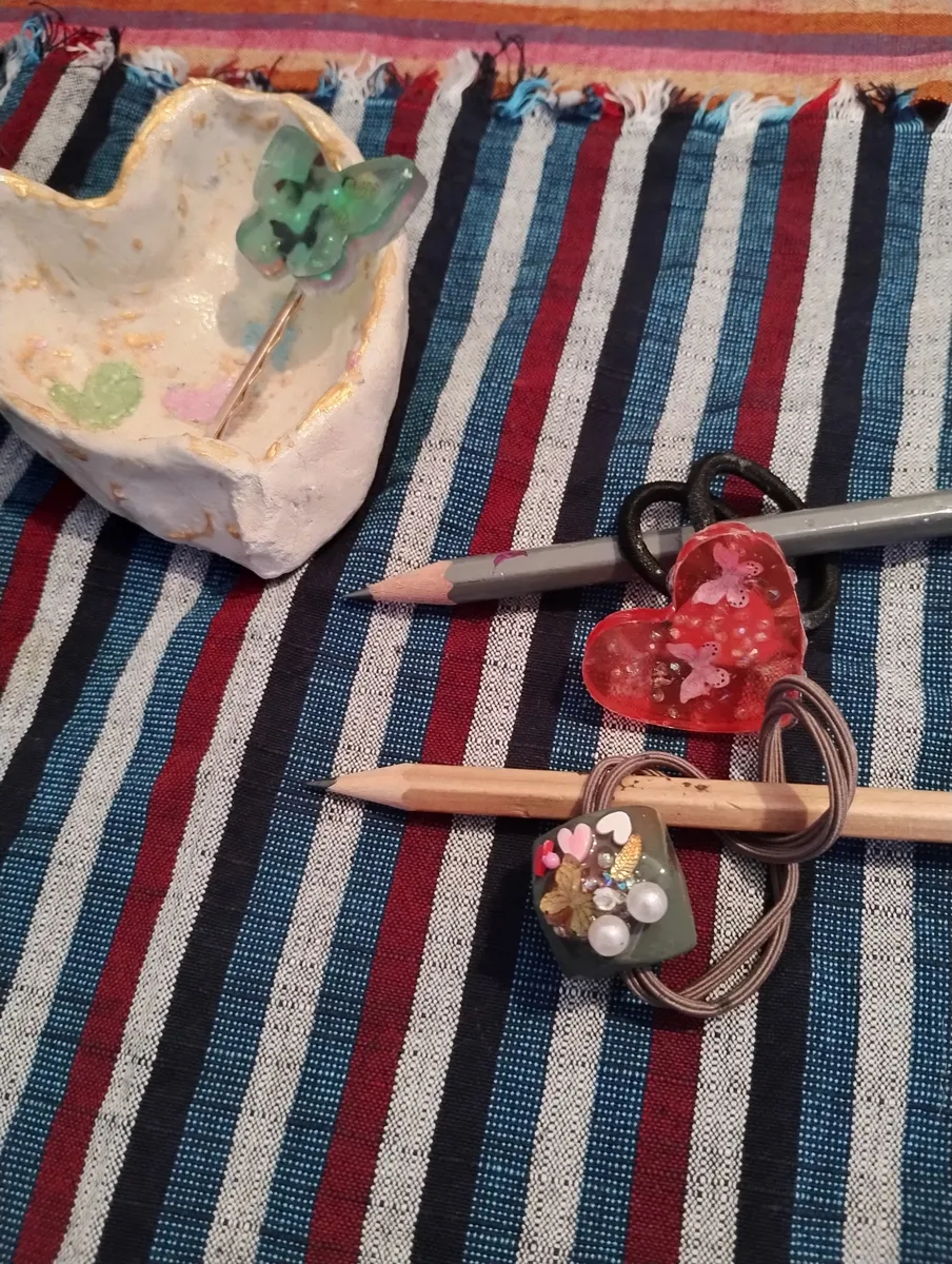 トップ > DIY > ハンドメイド > レジンでアクセサリー きゃな 2025/11/26 07:13 レジンでアクセサリー ダイソーのヘアゴムにレジンをのせて付けてみました ヘアゴムとしても指にはめたら指輪にも 腕につけたらブレスレットでも いいね 共有する 共有する X LINE リンクをコピー コメントする 1 件の返信 (新着順) ミュートしたユーザーの投稿です。 投稿を表示 パール 2025/11/27 06:49 とても素敵にオリジナル作品が出来ましたね😊🎶 色々に使えて良いですね😉💕🎵 いいね 返信する ミュートしたユーザーの投稿です。 投稿を表示 きゃな 2025/11/27 08:12 パール ありがとうございます✨ 試していろいろ出来たら良いなと思います! いいね 返信する