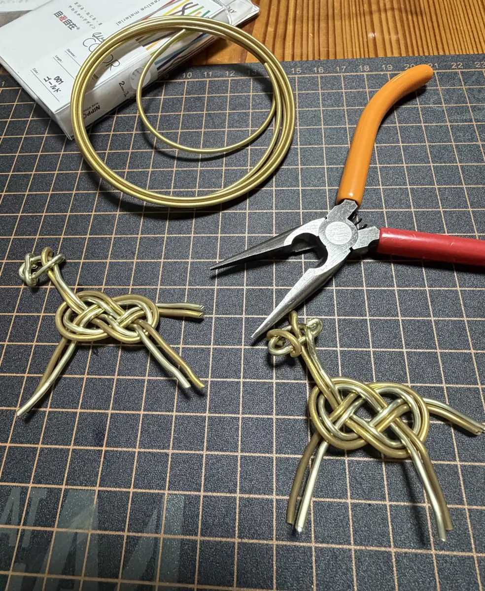 柔らかいタイプのワイヤーを2色使いました。(でも結ぶ時はちょっと硬い)