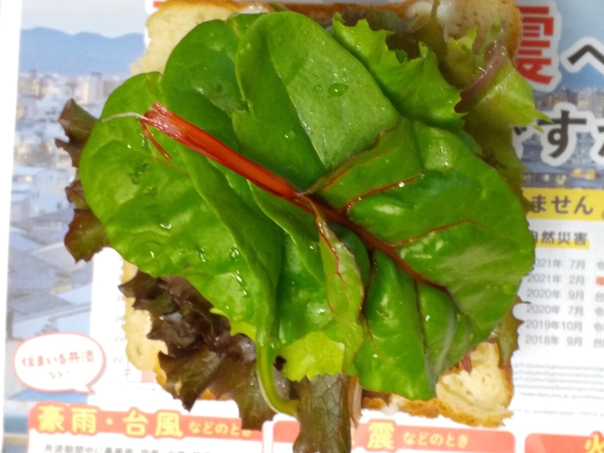 しゃっきり採れたての自家製野菜もはさんでヾ(´ρ`)〃