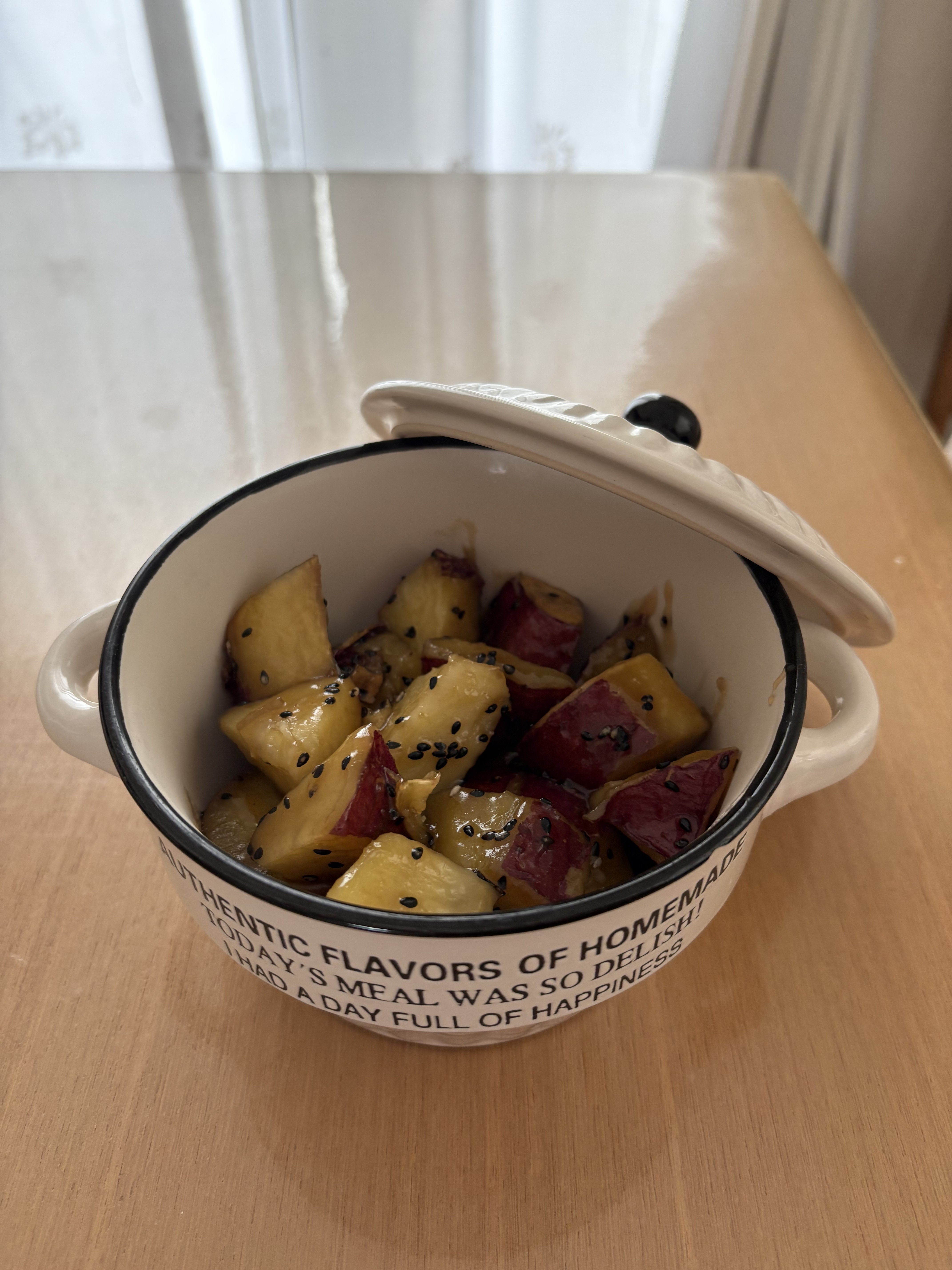 トップ > クッキング > スイーツ > 油で揚げない大学芋 ハッピー 2025/11/24 11:34 油で揚げない大学芋 今日は油で揚げない大学芋を作りました🍠 揚げていないので、たくさん食べても罪悪感ゼロです😆 さつまいもが美味しい季節ですので、みなさんも是非作ってみてくださいね☺️ さつまいもは腸内環境が良くなりますので良いですよ♪♪ いいね 共有する 共有する X LINE リンクをコピー コメントする 1 件の返信 (新着順) ミュートしたユーザーの投稿です。 投稿を表示 ぱんだ 2025/11/24 19:51 揚げないで茹でたんですか? いいね 返信する ミュートしたユーザーの投稿です。 投稿を表示 ハッピー 2025/11/24 21:11 ぱんだ コメントありがとうございます。 クックホーミー(ドラえもんがCMしていた圧力鍋)のレシピ本で作りました。 鍋に材料とさつまいもを入れ、ボタンを押すだけです♪ サラダ油は大1しか使用していないので、とてもヘルシーです😁 いいね 返信する ミュートしたユーザーの投稿です。 投稿を表示 ぱんだ 2025/11/24 22:06 ハッピー へぇー❣️そんな事が出来ちゃうなんて天才調理ですねー👏 いいね 返信する